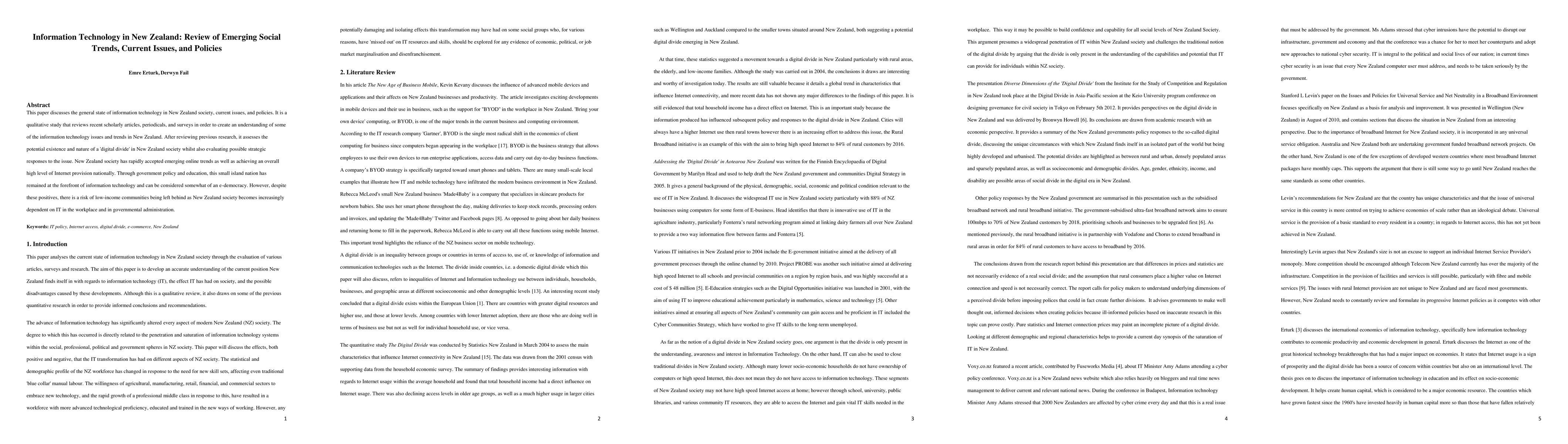This paper reviews the state of information technology in New Zealand, highlighting its rapid adoption and high Internet provision, while also addressing the potential 'digital divide' and the risk of excluding low-income communities. It evaluates strategic responses to mitigate these issues.