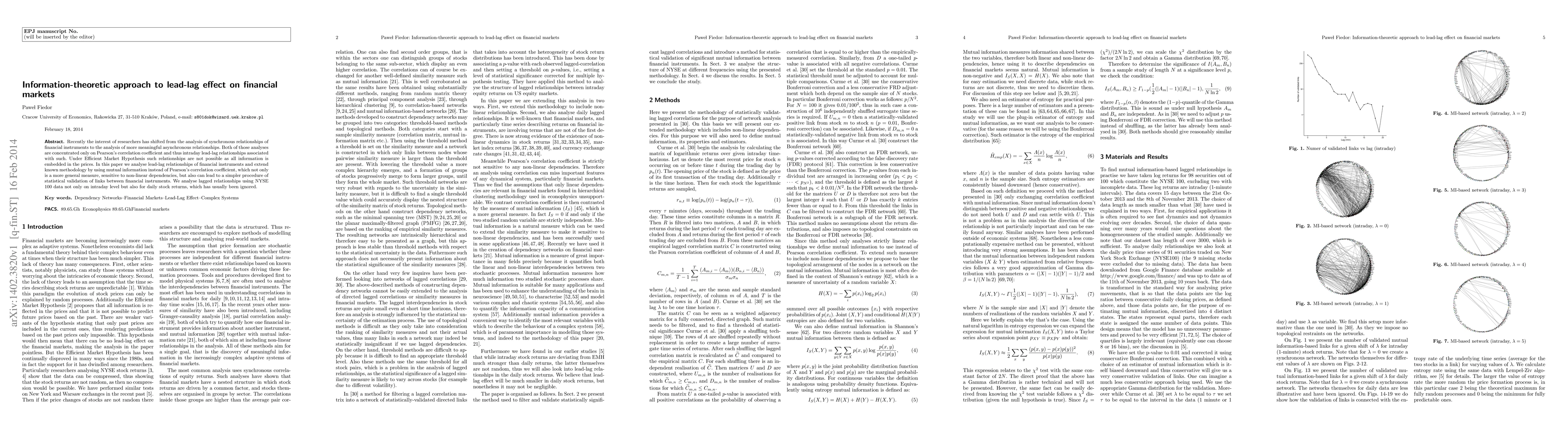 This paper explores lead-lag relationships in financial markets using mutual information instead of Pearson's correlation, focusing on both intraday and daily stock returns. It provides a more sensitive measure for non-linear dependencies and simplifies statistical validation of these relationships.