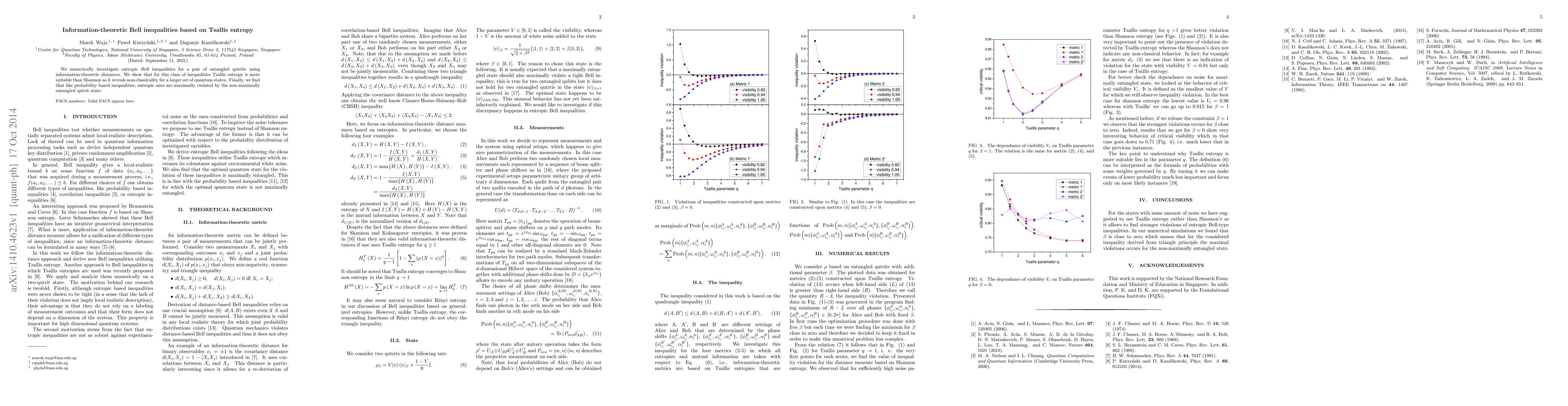 We numerically investigate entropic Bell inequalities for a pair of entangled qutrits using information-theoretic distances. We show that for this class of inequalities Tsallis entropy is more suitable than Shannon as it reveals non-classicality for a larger set of quantum states. Finally, we find that like probability based inequalities, entropic ones are maximally violated by the non-maximally entangled qutrit state.