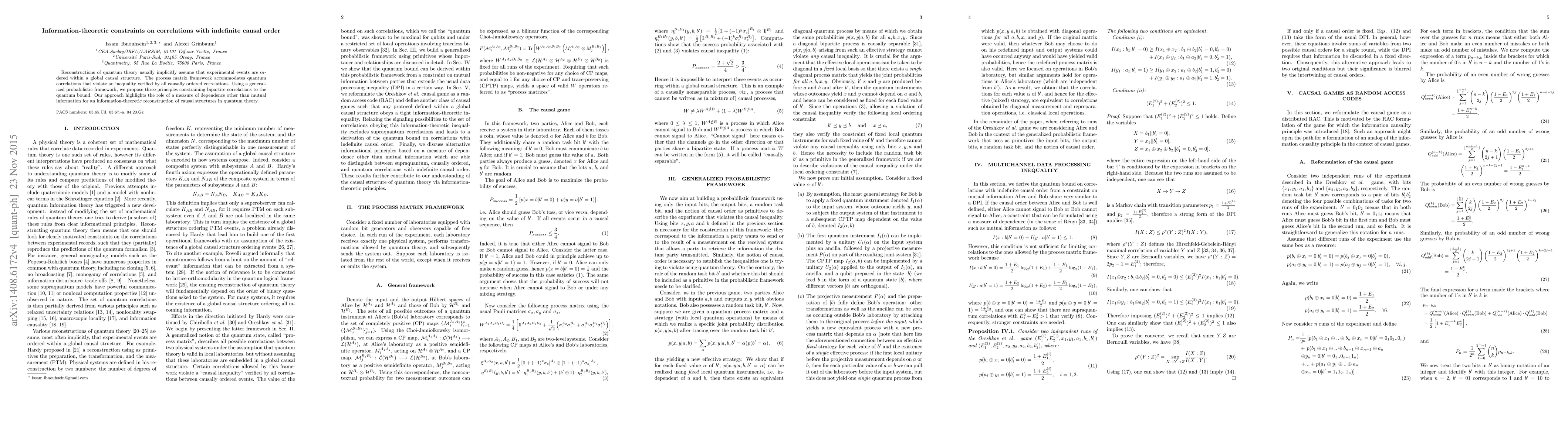 This paper proposes principles to constrain bipartite quantum correlations within the quantum bound using a generalized probabilistic framework, emphasizing a measure of dependence beyond mutual information for reconstructing causal structures. It challenges the assumption of a global causal order in quantum theory reconstructions.