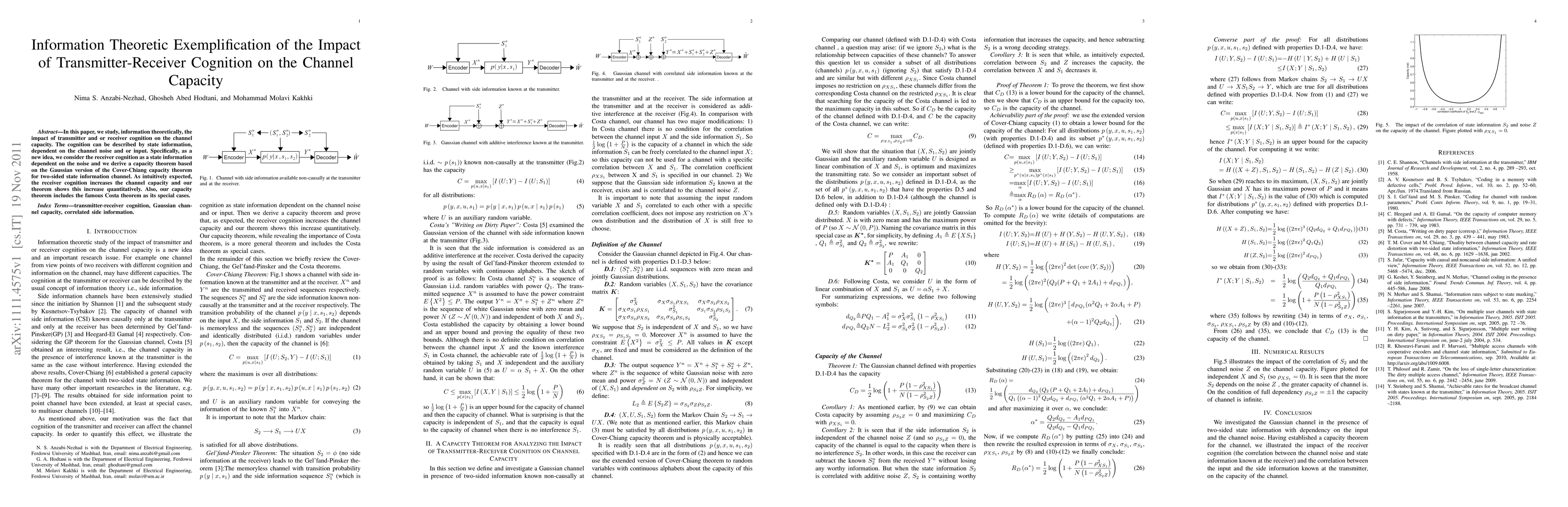 This paper investigates how transmitter and receiver cognition, characterized by state information dependent on channel noise, impacts channel capacity. The authors derive a capacity theorem that quantifies the increase in capacity due to receiver cognition, showing that it encompasses the Costa theorem as a special case.