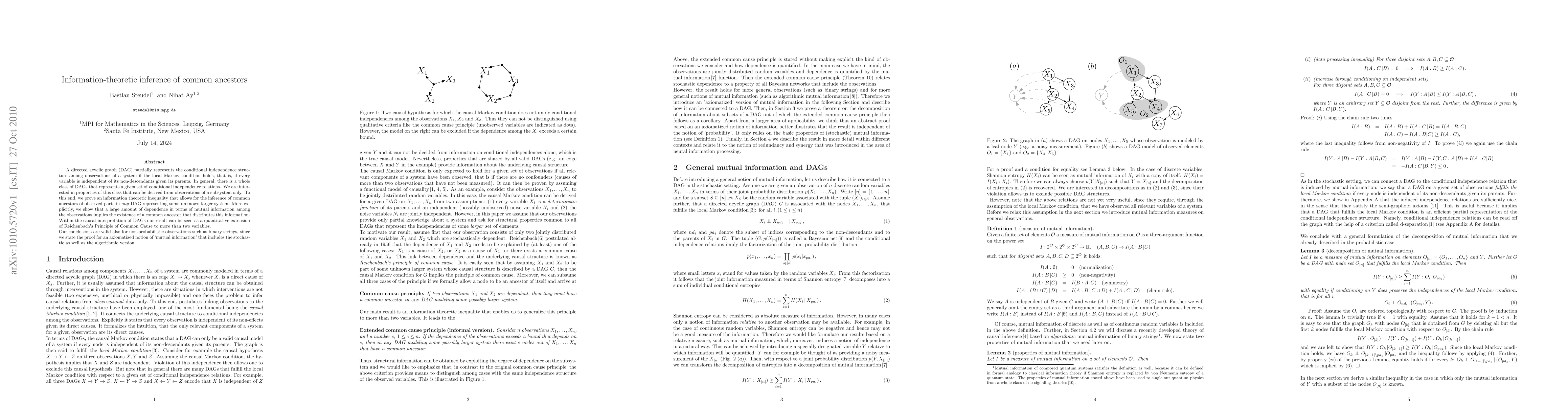 This paper develops an information-theoretic method to infer common ancestors in directed acyclic graphs (DAGs) based on mutual information among observations. It extends Reichenbach's Principle of Common Cause to multiple variables and applies to both probabilistic and non-probabilistic data.