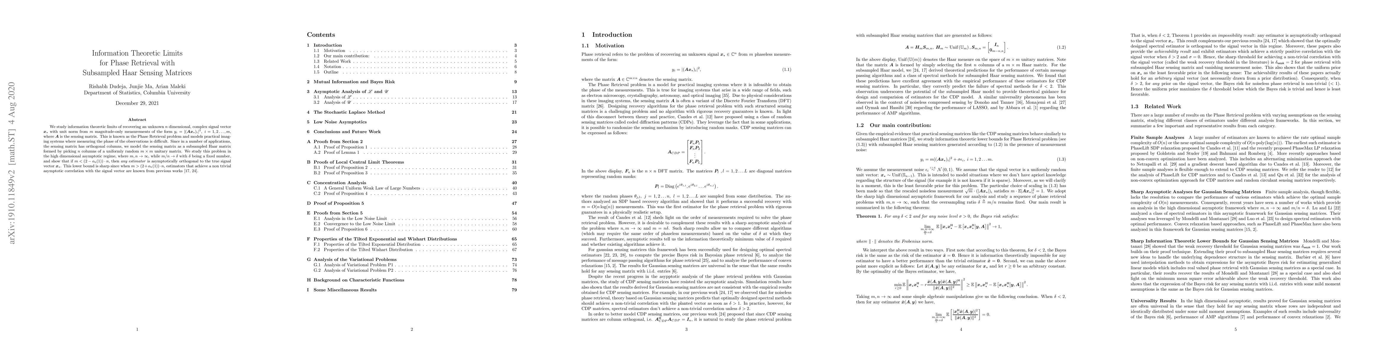Researchers studied information theoretic limits of recovering an unknown signal vector from magnitude-only measurements, finding that estimators can only achieve a certain level of correlation with the true signal if the number of measurements is below a specific threshold.