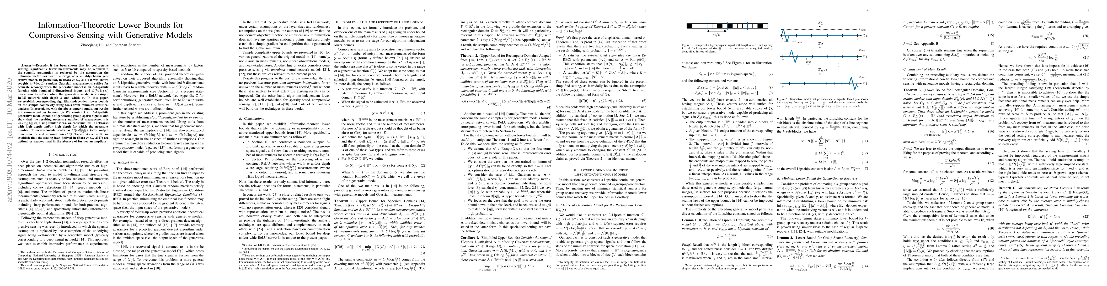This paper establishes lower bounds on the sample complexity for compressive sensing with generative models, showing that fewer measurements can be required when the sparsity assumption is replaced.