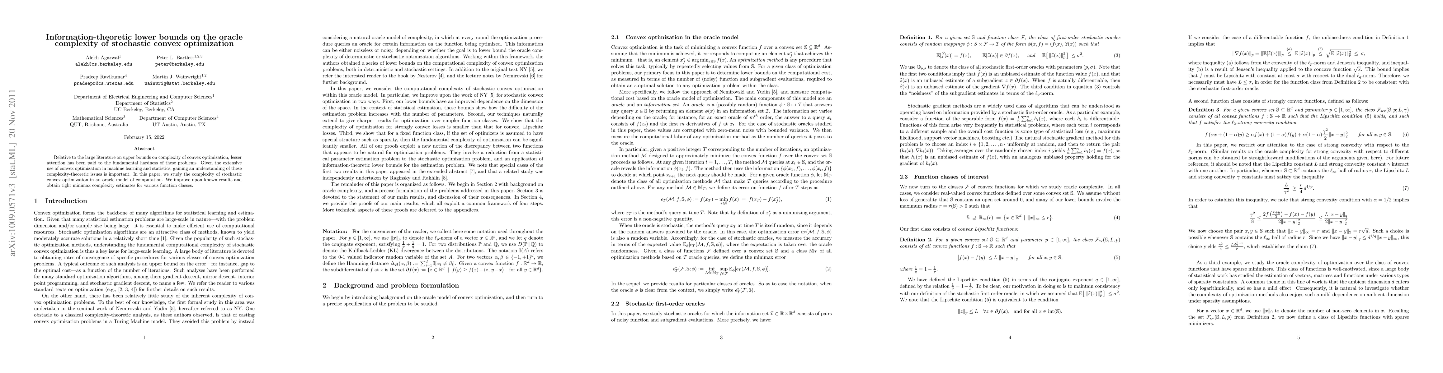 This paper investigates the fundamental lower bounds of stochastic convex optimization in an oracle model, providing improved and tight minimax complexity estimates for different function classes, which is crucial for understanding the challenges in convex optimization relevant to machine learning and statistics.