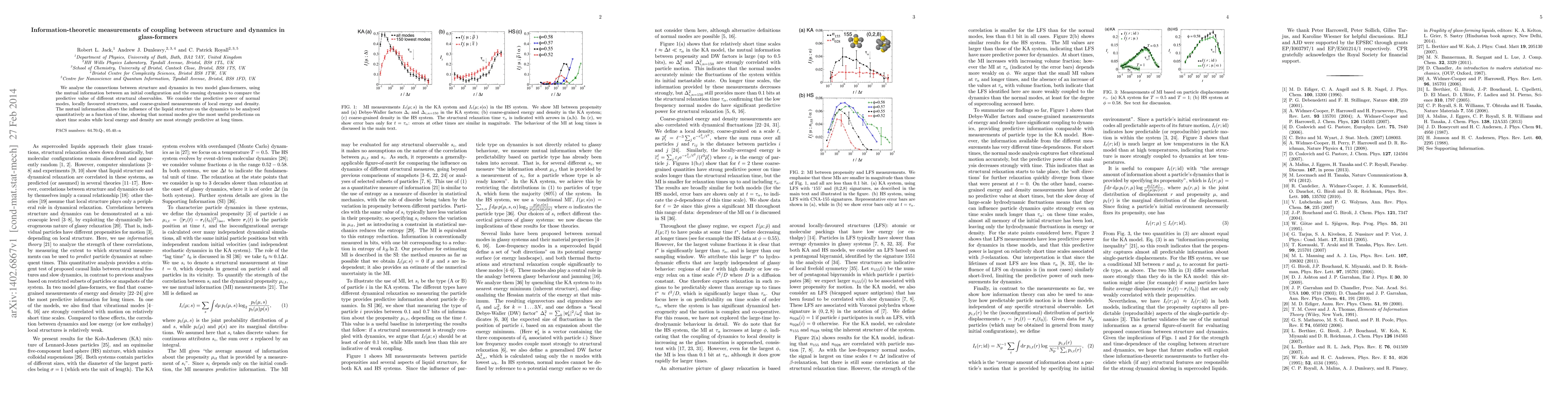 This study quantifies the relationship between structure and dynamics in glass-formers using mutual information, revealing that normal modes best predict short-term dynamics, while local energy and density are more predictive over long time scales.
