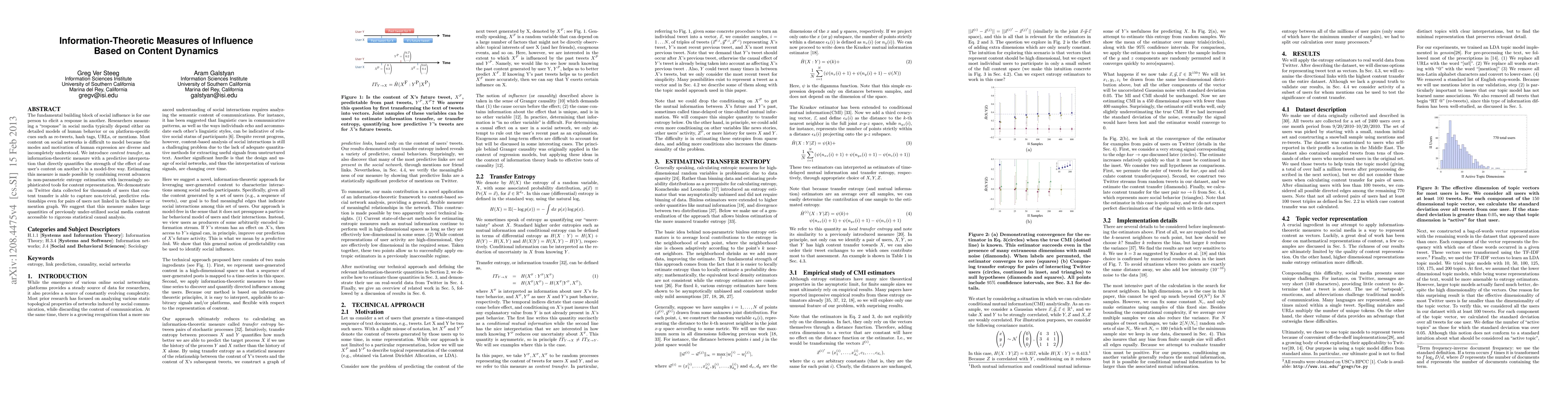 This paper introduces "content transfer," an information-theoretic measure to quantify the influence of one user's content on another's in social media without relying on detailed behavioral models. The measure leverages non-parametric entropy estimation and sophisticated content representation tools to capture predictive relationships among users, even those not directly connected in the network.
