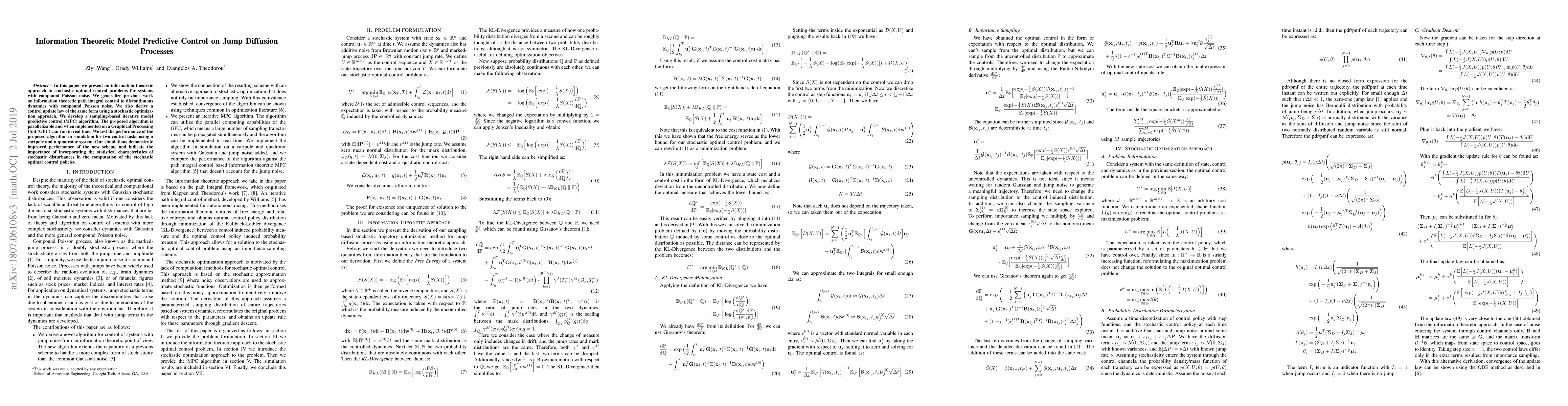 This paper introduces an information theoretic model predictive control algorithm for systems with compound Poisson noise, generalizing previous methods to handle discontinuous dynamics. The proposed iterative MPC algorithm, implemented on a GPU, shows real-time performance and improved results in simulations for cartpole and quadrotor control tasks.