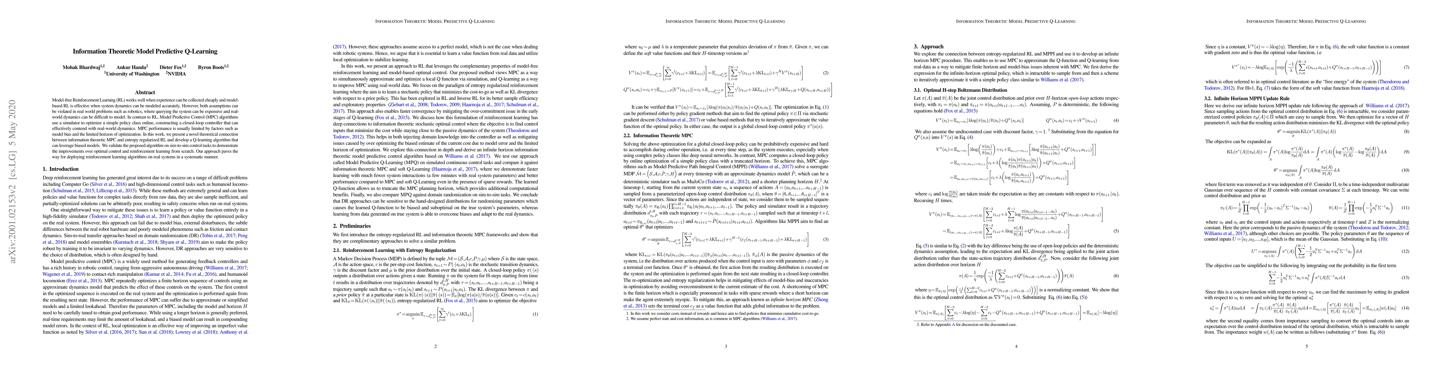 This paper introduces a novel Q-learning algorithm that combines information theoretic Model Predictive Control with entropy regularization to effectively handle real-world dynamics where traditional RL assumptions fail. The proposed method demonstrates improved performance over optimal control and reinforcement learning in sim-to-sim control tasks.