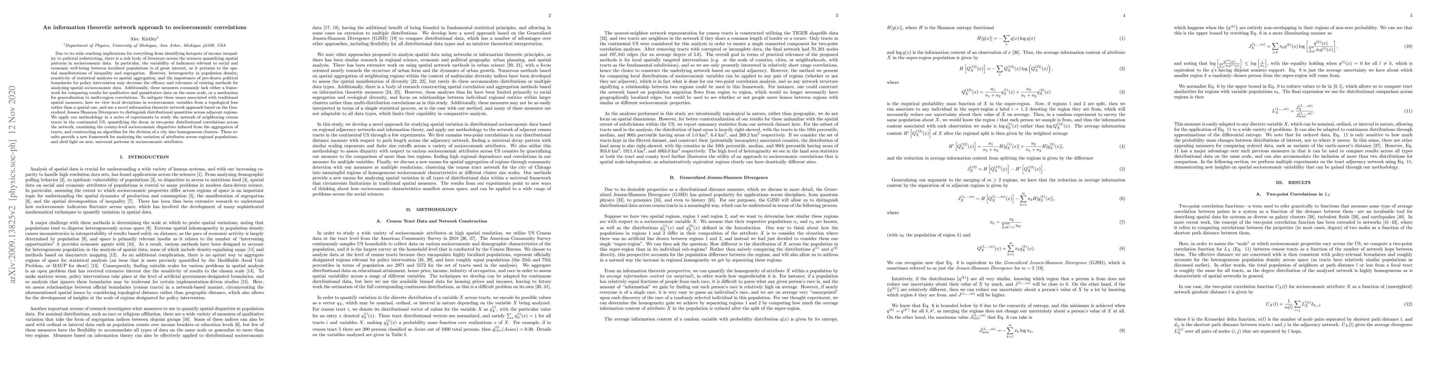 Researchers developed an information theoretic network approach to analyze socioeconomic correlations in a topological lens, revealing new patterns in regional attributes and a framework for comparing qualitative and quantitative data.