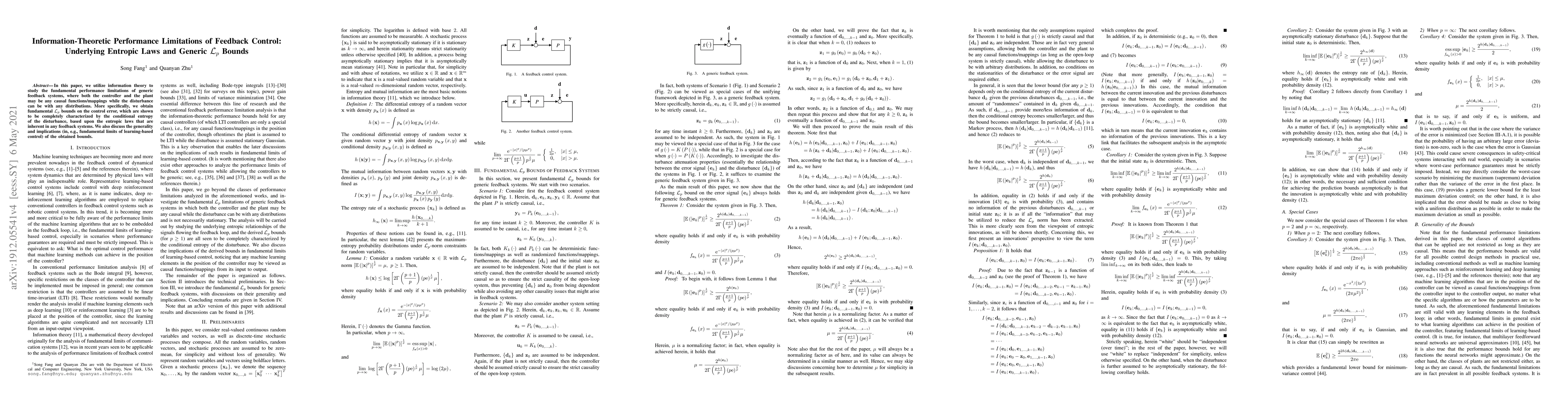 This paper employs information theory to explore the inherent performance limitations of generic feedback control systems, deriving $\mathcal{L}_p$ bounds on control error that are determined by the conditional entropy of disturbances, revealing fundamental entropic laws governing such systems and their implications for learning-based control.