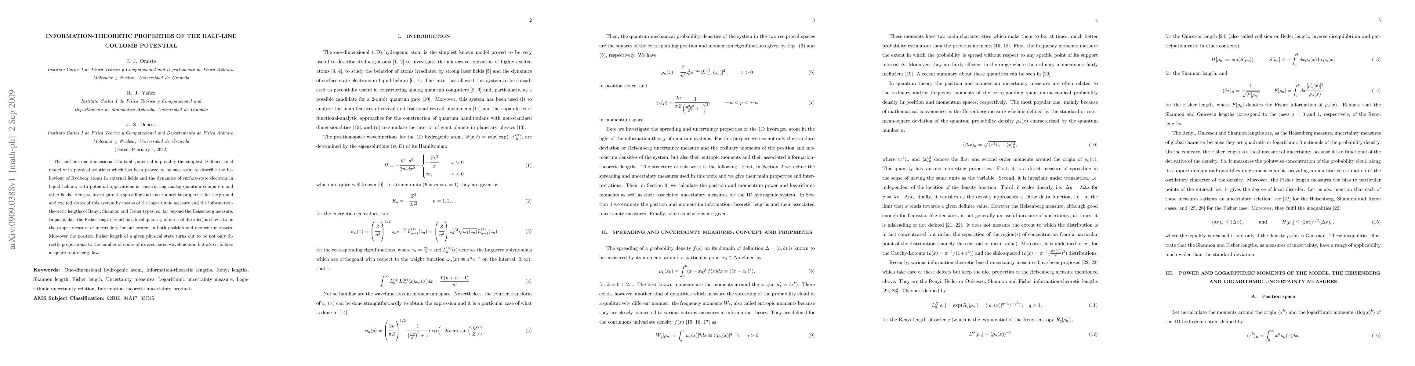 This paper explores the information-theoretic properties of the half-line Coulomb potential, focusing on the spreading and uncertainty characteristics of its ground and excited states. The Fisher length is identified as the most appropriate measure of uncertainty, showing a direct correlation with the number of nodes in the wavefunction and a square-root energy law.