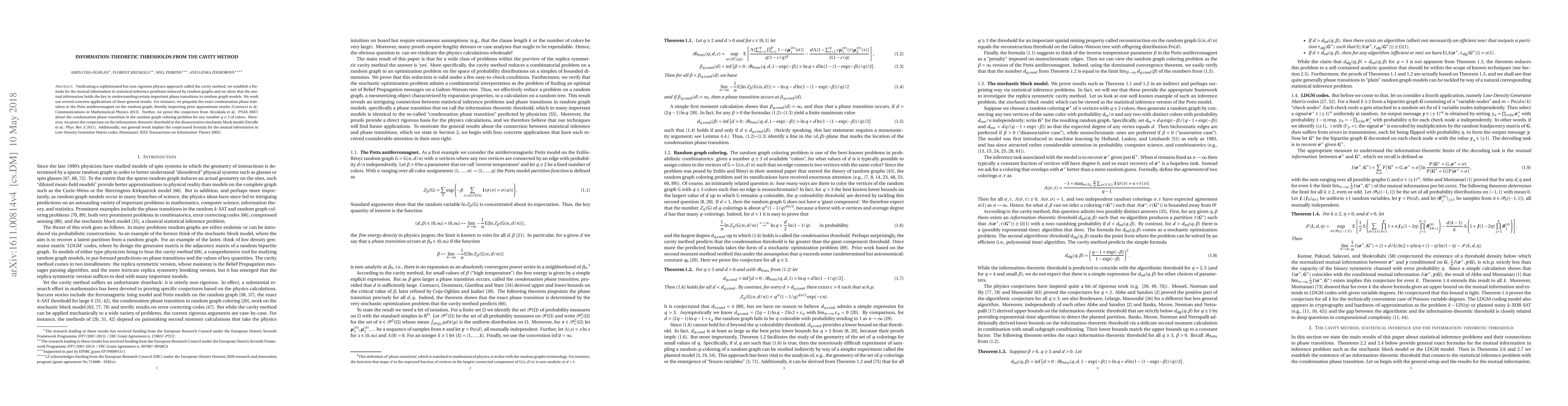 This paper rigorously validates the cavity method to establish a formula for mutual information in statistical inference problems via random graphs, revealing its role in understanding phase transitions. It applies these results to confirm several conjectures regarding phase transitions in random graph models, including the Potts antiferromagnet, random graph coloring, and the disassortative stochastic block model.