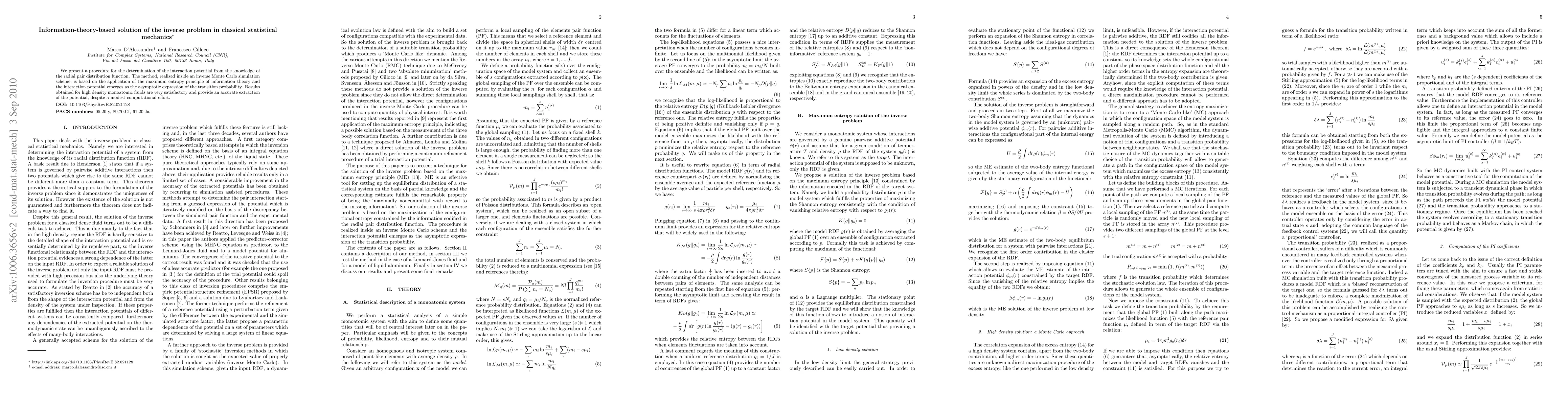 Researchers developed an information-theory-based method to extract interaction potential from radial pair distribution function in classical statistical mechanics, achieving satisfactory results with modest computational effort.