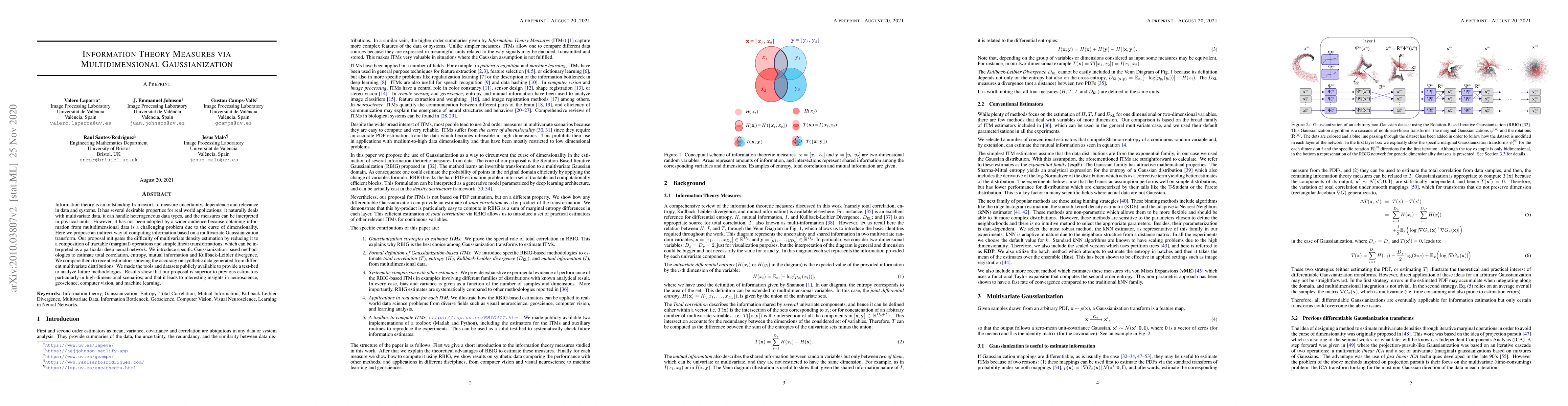 This research proposes a novel method to compute information theory measures from multidimensional data by Gaussianizing it, thus bypassing the challenges of high-dimensional data. The approach, interpretable as a deep neural network, outperforms existing estimators, especially in high-dimensional scenarios, and is applied successfully in various fields like neuroscience, geoscience, computer vision, and machine learning.