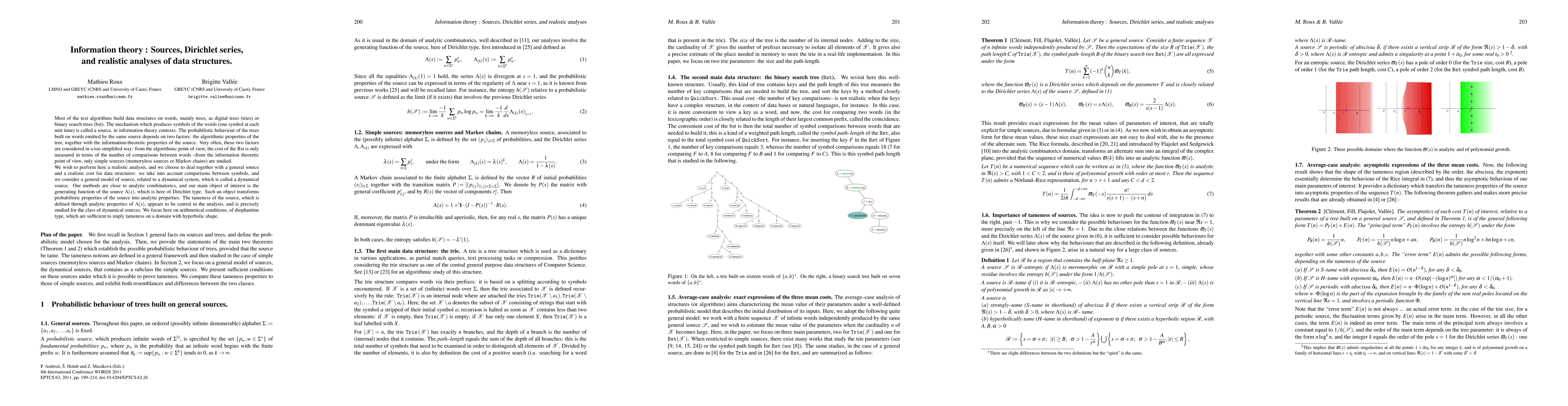 Most of the text algorithms build data structures on words, mainly trees, as digital trees (tries) or binary search trees (bst). The mechanism which produces symbols of the words (one symbol at each unit time) is called a source, in information theory contexts. The probabilistic behaviour of the trees built on words emitted by the same source depends on two factors: the algorithmic properties of the tree, together with the information-theoretic properties of the source. Very often, these two factors are considered in a too simplified way: from the algorithmic point of view, the cost of the Bst is only measured in terms of the number of comparisons between words --from the information theoretic point of view, only simple sources (memoryless sources or Markov chains) are studied. We wish to perform here a realistic analysis, and we choose to deal together with a general source and a realistic cost for data structures: we take into account comparisons between symbols, and we consider a general model of source, related to a dynamical system, which is called a dynamical source. Our methods are close to analytic combinatorics, and our main object of interest is the generating function of the source Lambda(s), which is here of Dirichlet type. Such an object transforms probabilistic properties of the source into analytic properties. The tameness of the source, which is defined through analytic properties of Lambda(s), appears to be central in the analysis, and is precisely studied for the class of dynamical sources. We focus here on arithmetical conditions, of diophantine type, which are sufficient to imply tameness on a domain with hyperbolic shape.