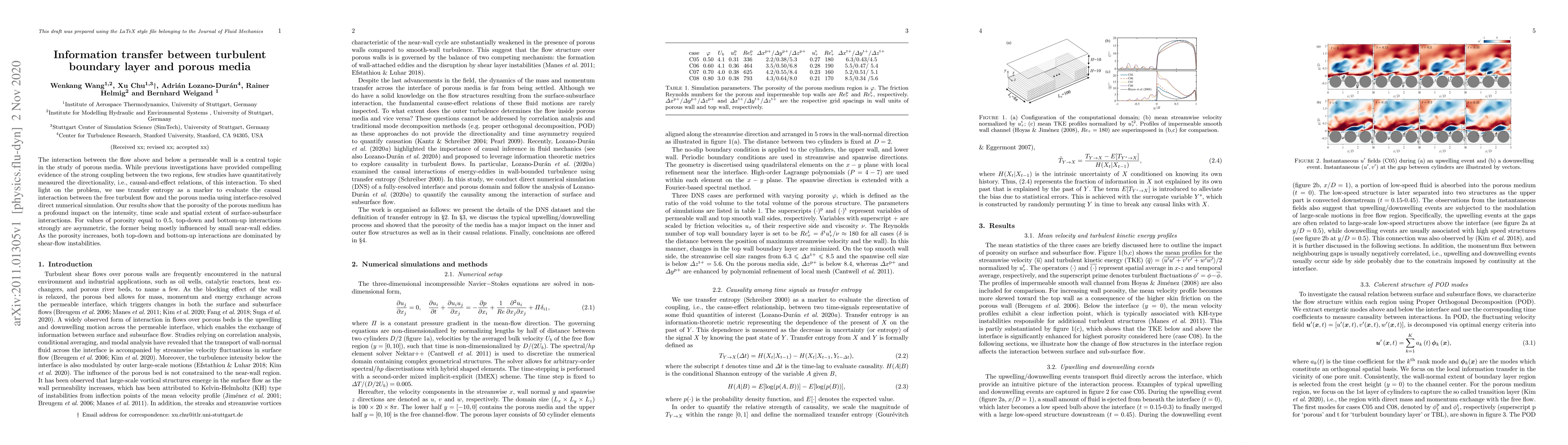 This study employs transfer entropy to quantify the causal interactions between turbulent boundary layers and porous media, revealing that porosity significantly influences the intensity, time scale, and spatial extent of these interactions. For high porosity (0.5), the interaction is asymmetric, with top-down effects primarily driven by small near-wall eddies, while increased porosity leads to dominance by shear-flow instabilities.