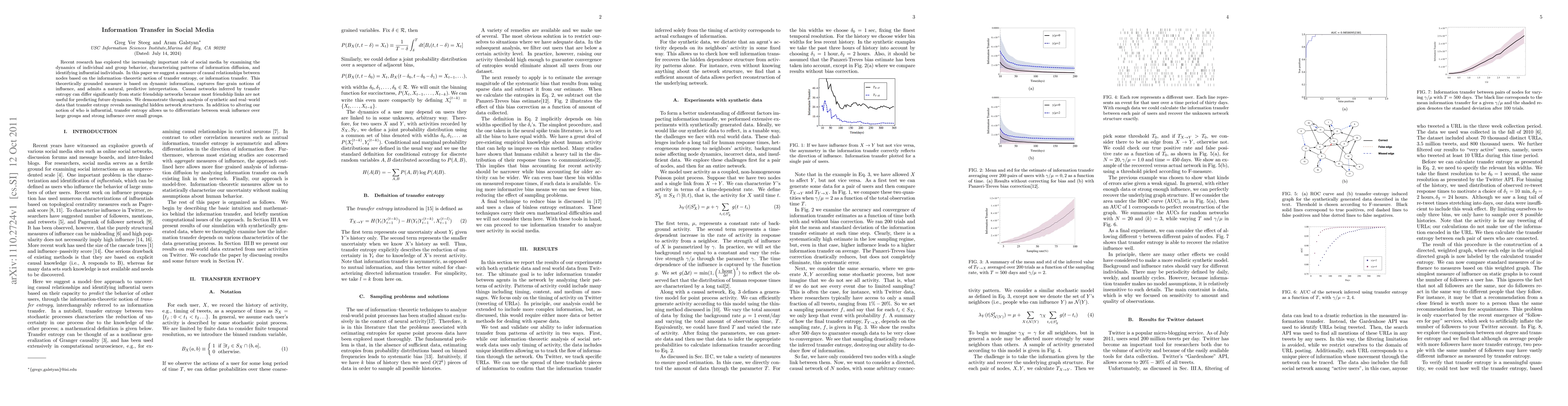 This paper proposes a measure of causal relationships in social media using transfer entropy to capture dynamic information diffusion and influence. Unlike static friendship networks, transfer entropy reveals hidden structures and differentiates between weak and strong influences.