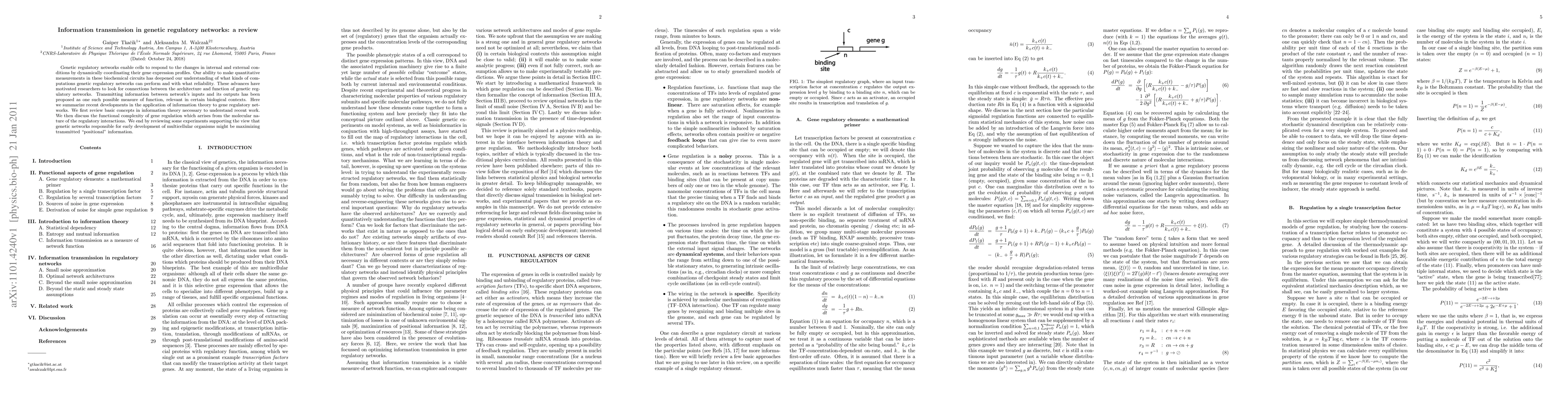 While the application of information theory to biological systems isn't new, this review uniquely focuses on genetic regulatory networks, highlighting their functional complexity and information transmission capabilities.