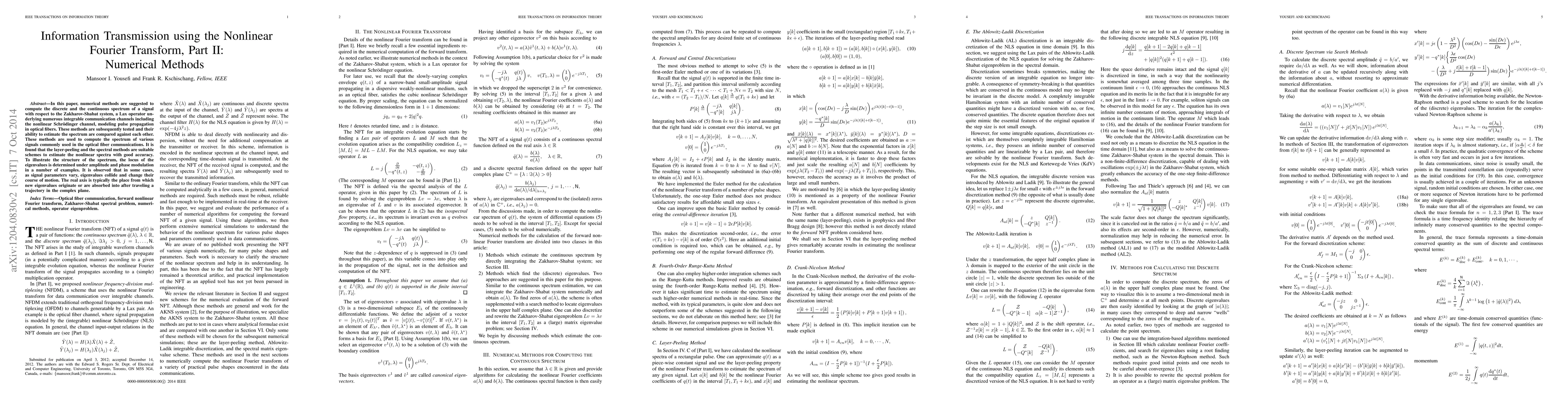 Researchers developed numerical methods to compute the spectrum of signals in optical fibers, comparing their accuracy with existing schemes, and found layer-peeling and spectral methods effective for estimating nonlinear spectra.
