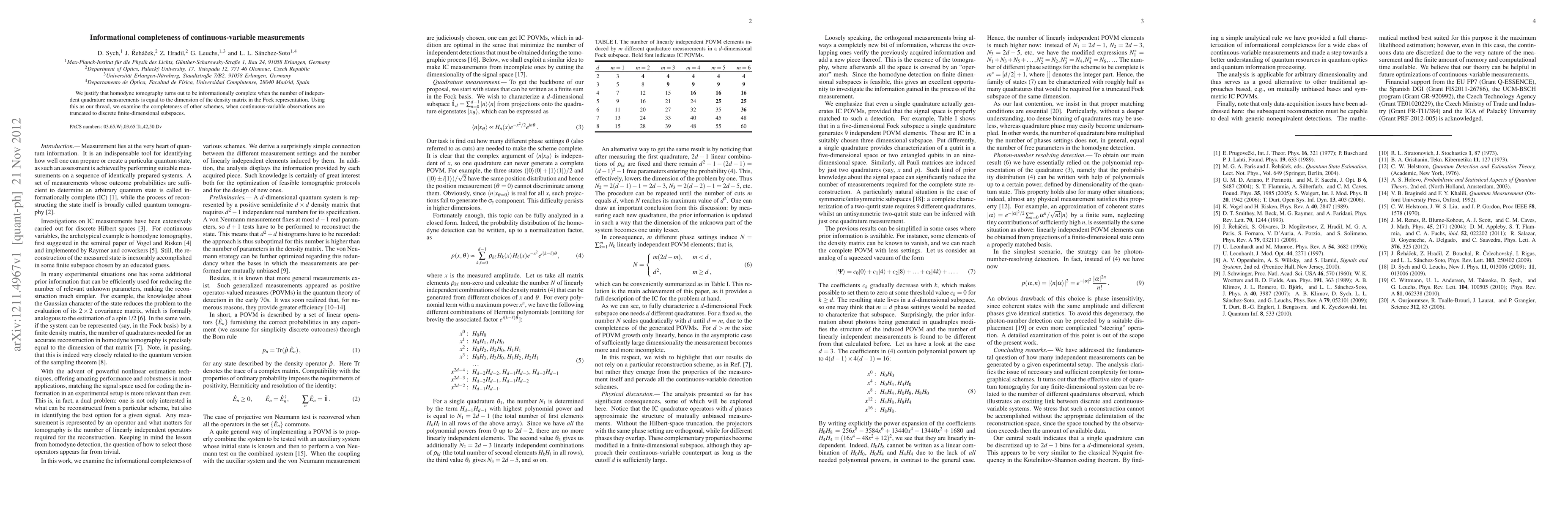 Researchers found that homodyne tomography is informationally complete when using a certain number of quadrature measurements, and they applied this finding to other measurement schemes with truncated subspaces.