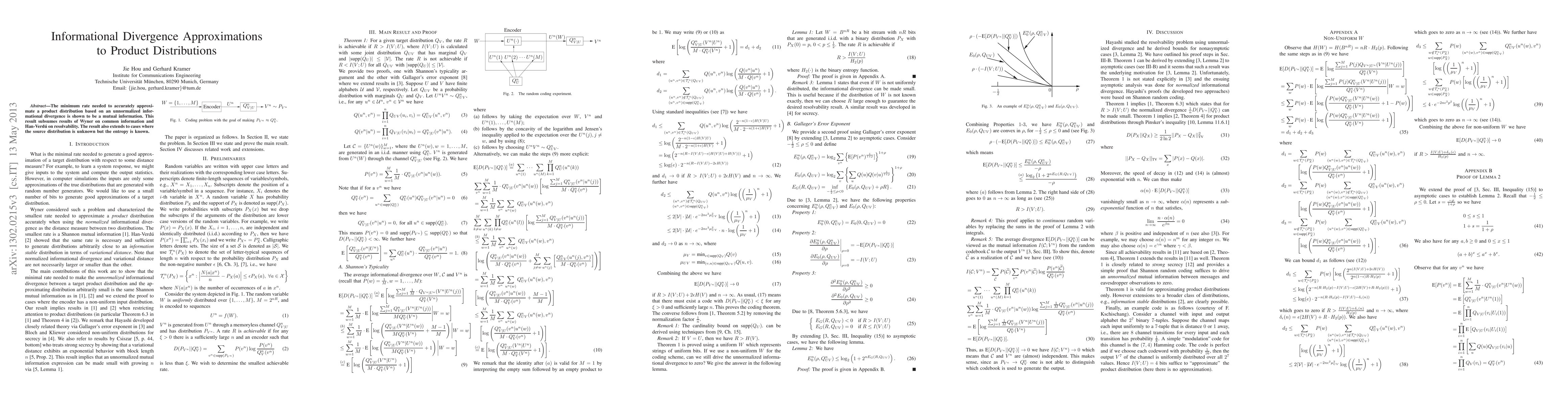 The minimum rate needed to accurately approximate a product distribution based on an unnormalized informational divergence is shown to be a mutual information. This result subsumes results of Wyner on common information and Han-Verd\'{u} on resolvability. The result also extends to cases where the source distribution is unknown but the entropy is known.