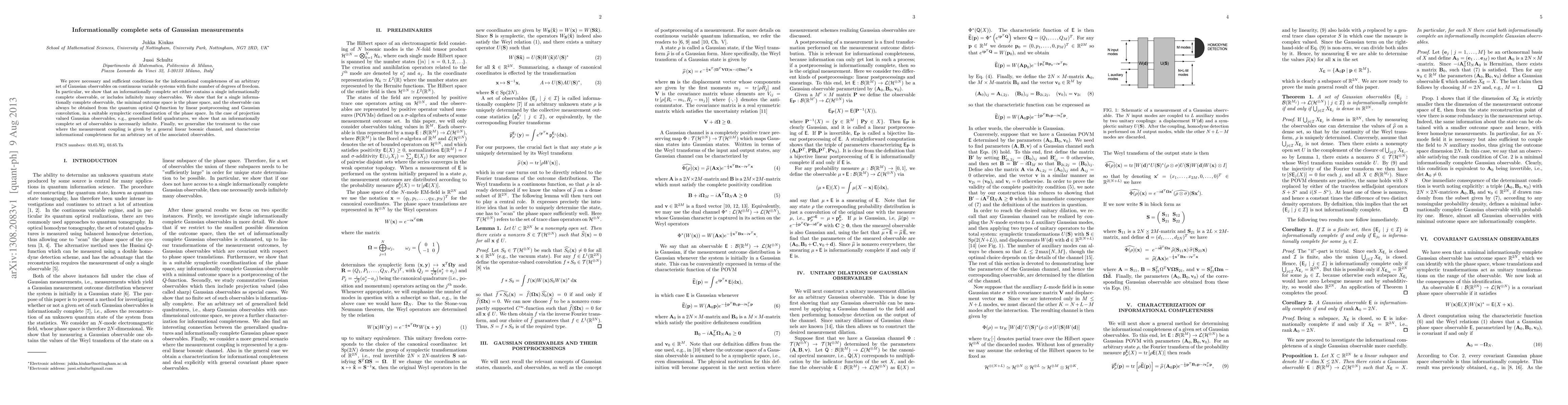 We prove necessary and sufficient conditions for the informational completeness of an arbitrary set of Gaussian observables on continuous variable systems with finite number of degrees of freedom. In particular, we show that an informationally complete set either contains a single informationally complete observable, or includes infinitely many observables. We show that for a single informationally complete observable, the minimal outcome space is the phase space, and the observable can always be obtained from the quantum optical $Q$-function by linear postprocessing and Gaussian convolution, in a suitable symplectic coordinatization of the phase space. In the case of projection valued Gaussian observables, e.g., generalized field quadratures, we show that an informationally complete set of observables is necessarily infinite. Finally, we generalize the treatment to the case where the measurement coupling is given by a general linear bosonic channel, and characterize informational completeness for an arbitrary set of the associated observables.