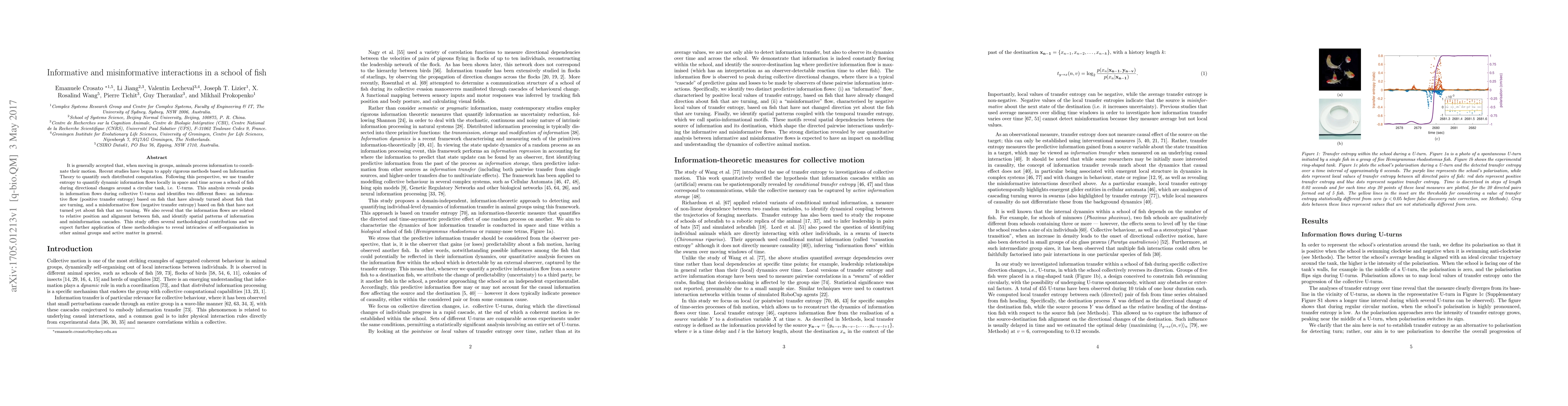A study used transfer entropy to analyze information flows in a school of fish during directional changes, revealing both informative and misinformative interactions that relate to relative position and alignment between fish.