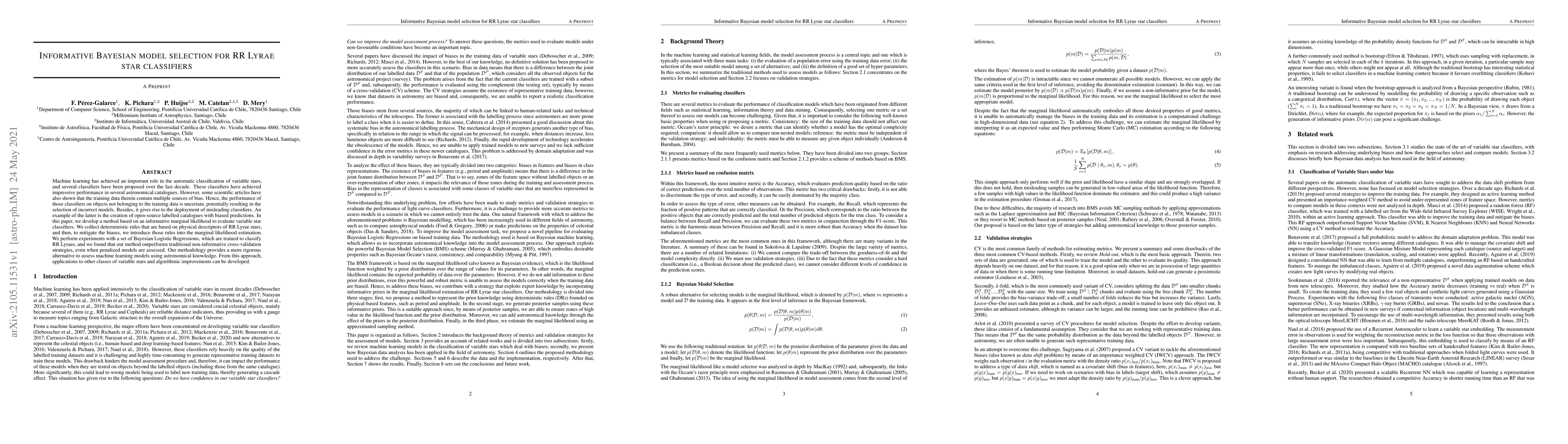 This paper proposes an informative Bayesian model selection method for classifying RR Lyrae stars, integrating physical descriptors to mitigate training data biases. Experiments show that the method outperforms traditional cross-validation, offering a more rigorous assessment incorporating astronomical knowledge.