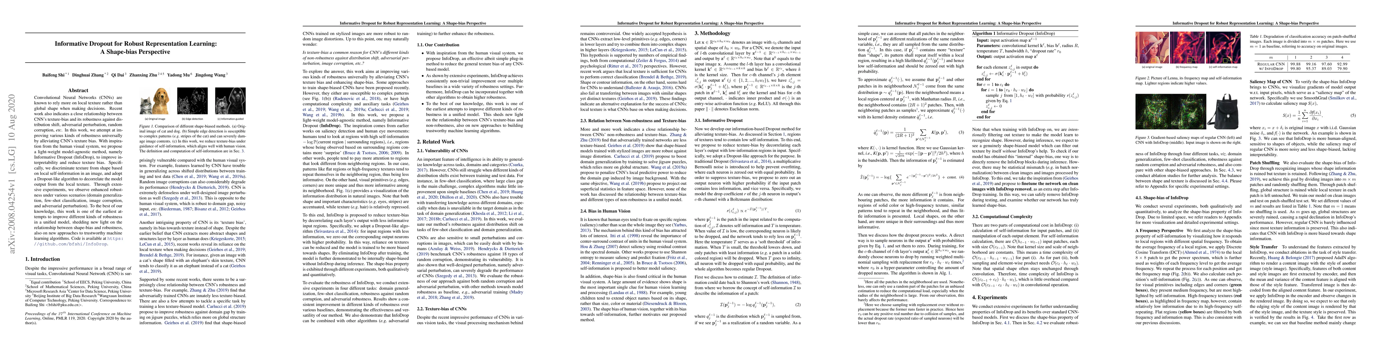 This paper proposes Informative Dropout (InfoDrop), a model-agnostic method to reduce convolutional neural networks' texture bias and enhance robustness against various perturbations. By discriminating texture from shape and decorrelating local texture, InfoDrop improves robustness across domain generalization, few-shot classification, image corruption, and adversarial attacks.