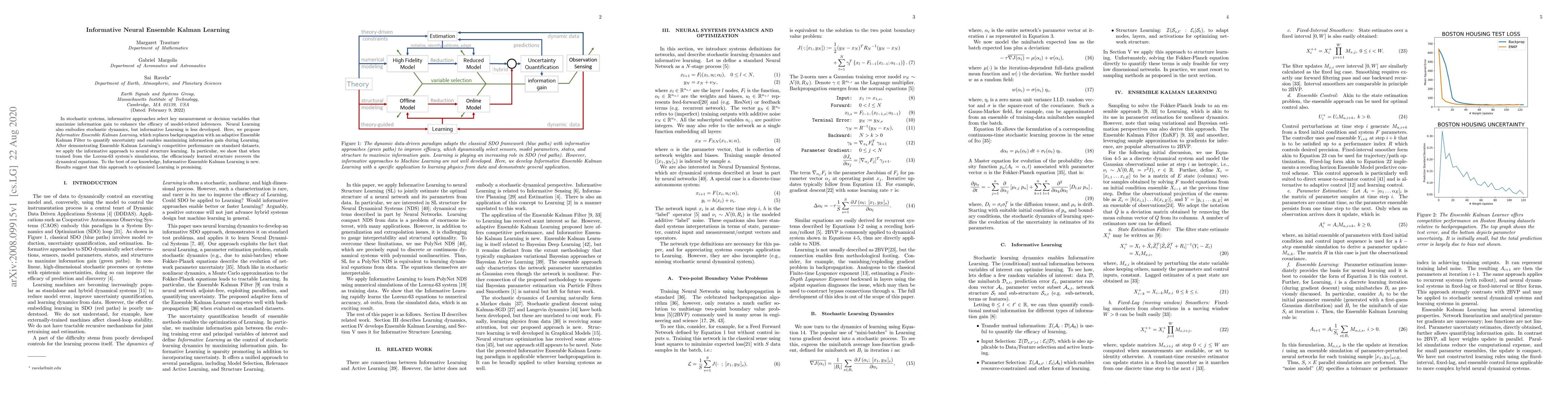 In stochastic systems, informative approaches select key measurement or decision variables that maximize information gain to enhance the efficacy of model-related inferences. Neural Learning also embodies stochastic dynamics, but informative Learning is less developed. Here, we propose Informative Ensemble Kalman Learning, which replaces backpropagation with an adaptive Ensemble Kalman Filter to quantify uncertainty and enables maximizing information gain during Learning. After demonstrating Ensemble Kalman Learning's competitive performance on standard datasets, we apply the informative approach to neural structure learning. In particular, we show that when trained from the Lorenz-63 system's simulations, the efficaciously learned structure recovers the dynamical equations. To the best of our knowledge, Informative Ensemble Kalman Learning is new. Results suggest that this approach to optimized Learning is promising.