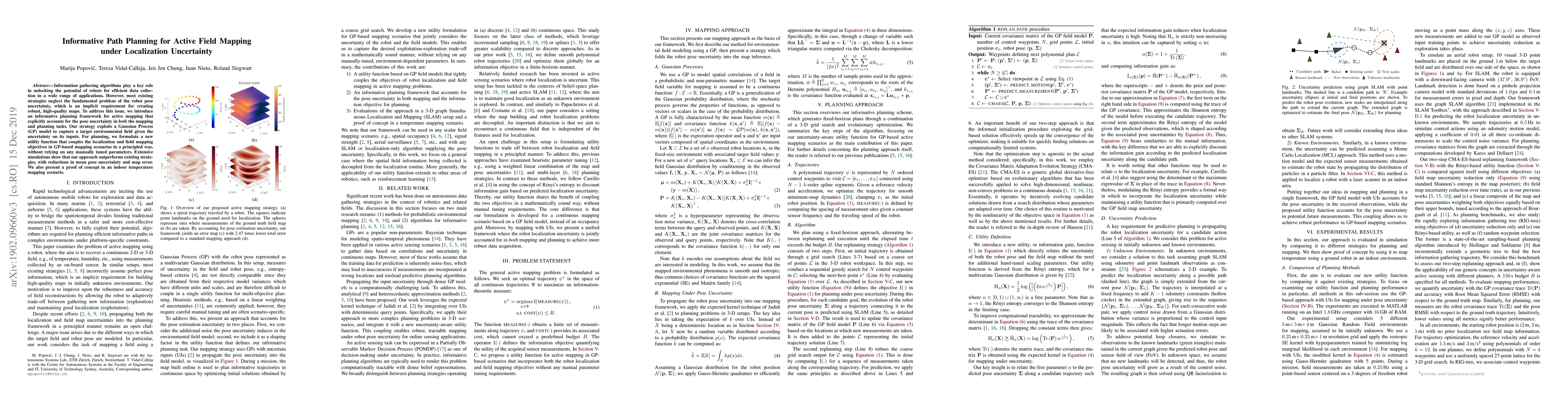 This paper proposes an informative path planning framework that explicitly considers robot pose uncertainty for active field mapping. It utilizes a Gaussian Process model to handle environmental uncertainties and introduces a new utility function that integrates localization and mapping objectives, outperforming existing strategies in simulations and a real-world indoor temperature mapping scenario.