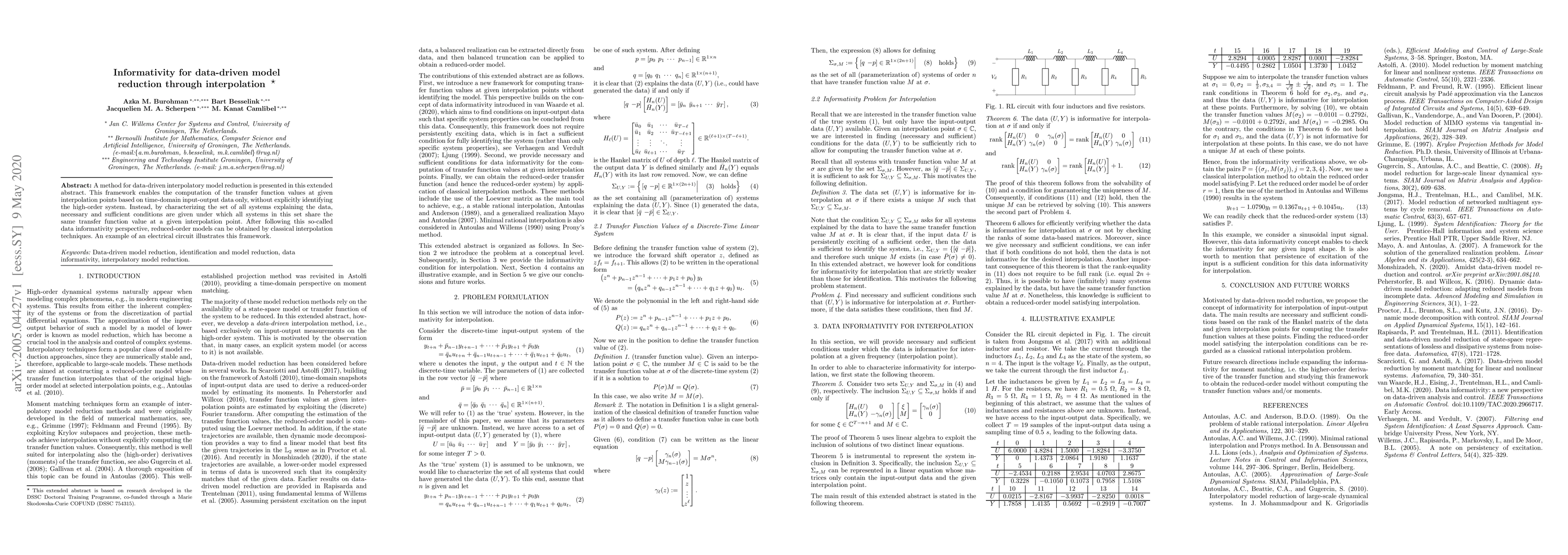 A method for data-driven interpolatory model reduction is presented in this extended abstract. This framework enables the computation of the transfer function values at given interpolation points based on time-domain input-output data only, without explicitly identifying the high-order system. Instead, by characterizing the set of all systems explaining the data, necessary and sufficient conditions are given under which all systems in this set share the same transfer function value at a given interpolation point. After following this so-called data informativity perspective, reduced-order models can be obtained by classical interpolation techniques. An example of an electrical circuit illustrates this framework.