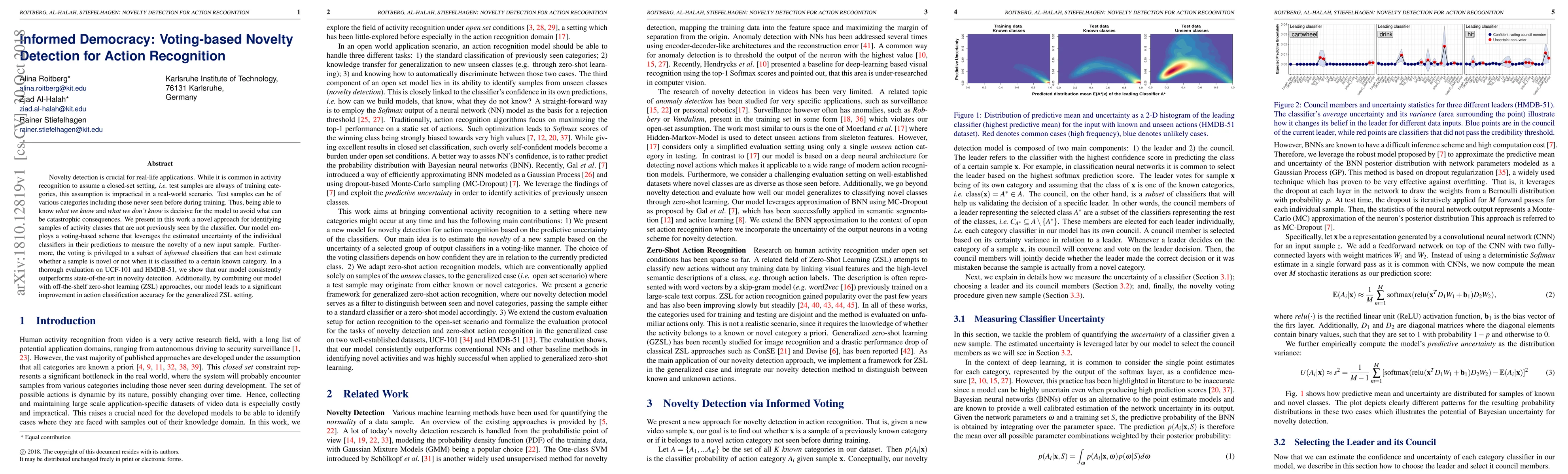 This paper introduces a voting-based novelty detection method for activity recognition, leveraging uncertainty estimates from classifiers to identify unseen activity classes. The model outperforms state-of-the-art in novelty detection and enhances zero-shot learning for generalized action classification.