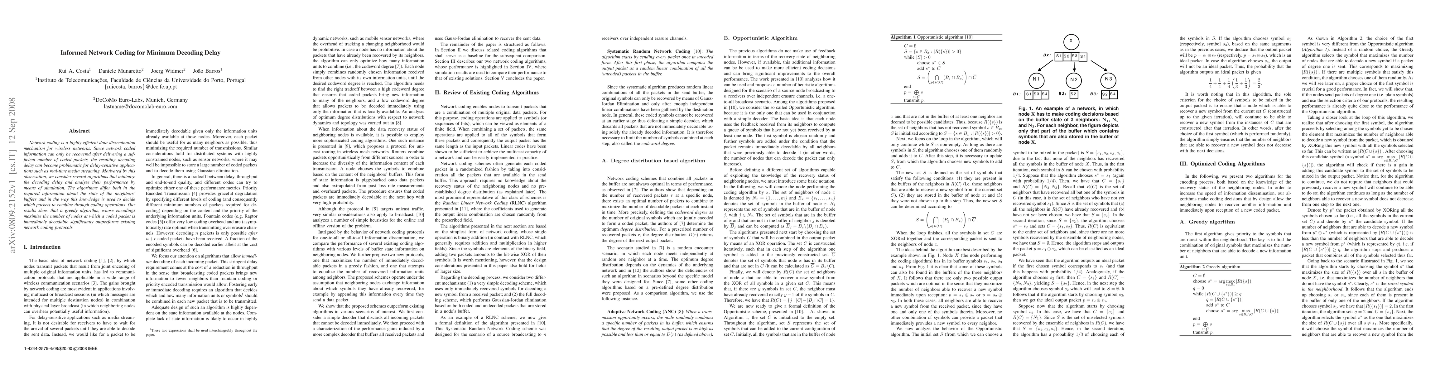 This paper proposes algorithms to minimize decoding delay in network coding for wireless networks, focusing on real-time media streaming. A greedy algorithm that maximizes immediate decodability at multiple nodes outperforms existing protocols, as demonstrated through simulations.
