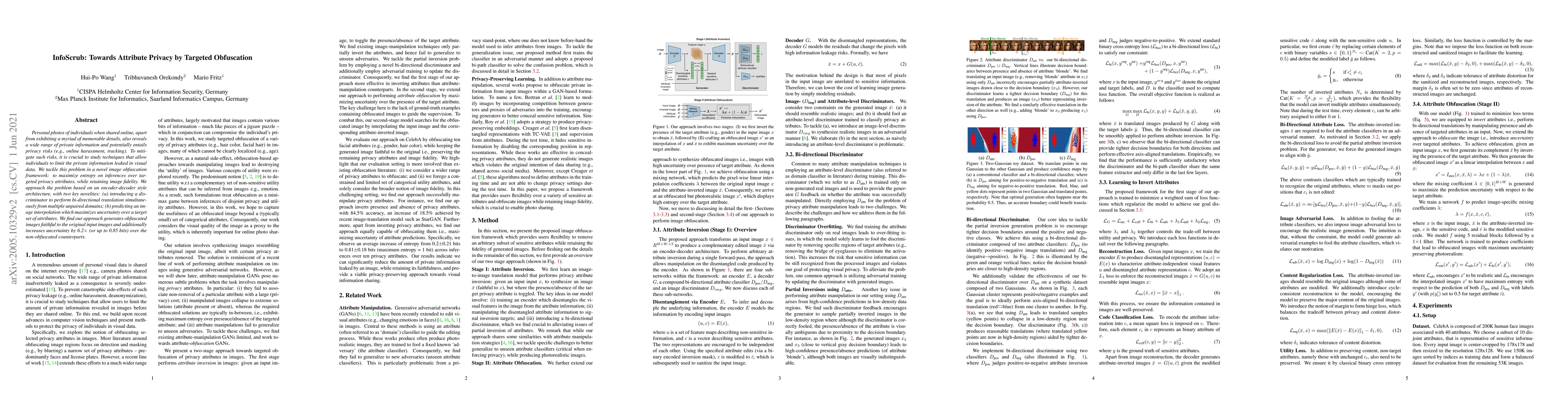 Personal photos of individuals when shared online, apart from exhibiting a myriad of memorable details, also reveals a wide range of private information and potentially entails privacy risks (e.g., online harassment, tracking). To mitigate such risks, it is crucial to study techniques that allow individuals to limit the private information leaked in visual data. We tackle this problem in a novel image obfuscation framework: to maximize entropy on inferences over targeted privacy attributes, while retaining image fidelity. We approach the problem based on an encoder-decoder style architecture, with two key novelties: (a) introducing a discriminator to perform bi-directional translation simultaneously from multiple unpaired domains; (b) predicting an image interpolation which maximizes uncertainty over a target set of attributes. We find our approach generates obfuscated images faithful to the original input images, and additionally increase uncertainty by 6.2$\times$ (or up to 0.85 bits) over the non-obfuscated counterparts.