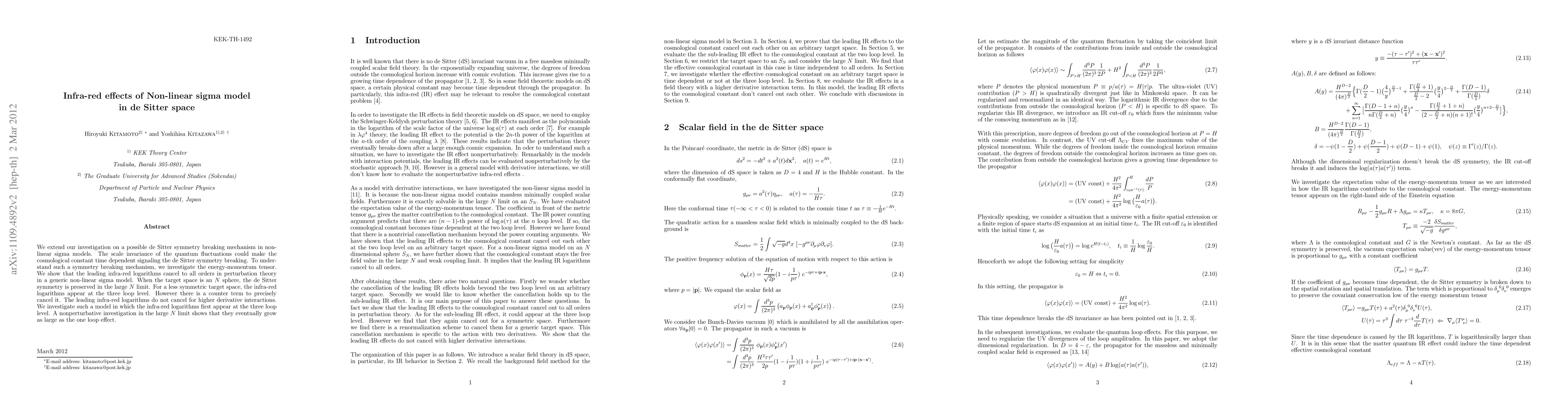 We extend our investigation on a possible de Sitter symmetry breaking mechanism in non-linear sigma models. The scale invariance of the quantum fluctuations could make the cosmological constant time dependent signaling the de Sitter symmetry breaking. To understand such a symmetry breaking mechanism, we investigate the energy-momentum tensor. We show that the leading infra-red logarithms cancel to all orders in perturbation theory in a generic non-linear sigma model. When the target space is an N sphere, the de Sitter symmetry is preserved in the large N limit. For a less symmetric target space, the infra-red logarithms appear at the three loop level. However there is a counter term to precisely cancel it. The leading infra-red logarithms do not cancel for higher derivative interactions. We investigate such a model in which the infra-red logarithms first appear at the three loop level. A nonperturbative investigation in the large N limit shows that they eventually grow as large as the one loop effect.