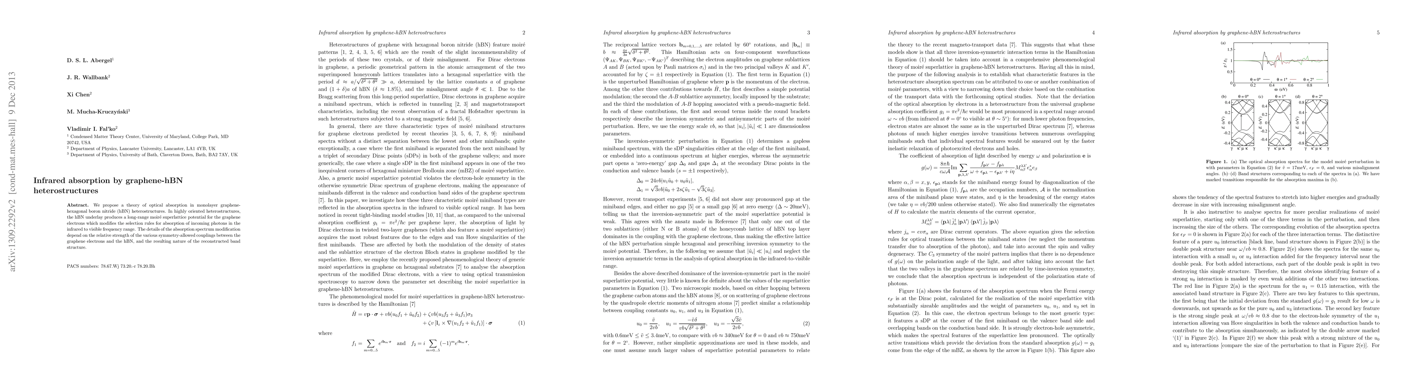 This paper proposes a theoretical framework for understanding optical absorption in graphene-hBN heterostructures, where the hBN layer creates a moir\'e superlattice that alters the absorption spectrum in the infrared to visible range, depending on the strength of electron-hBN interactions and the reconstructed band structure.