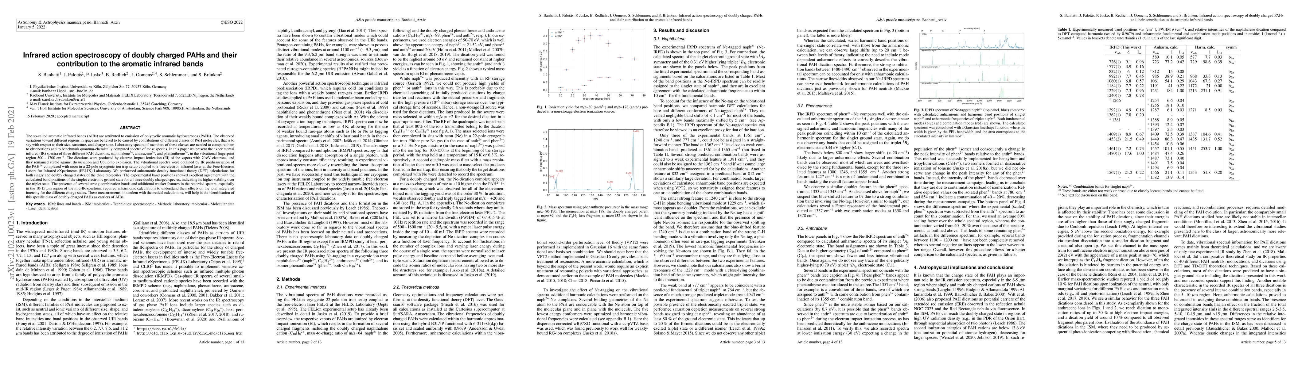 This research presents experimental infrared spectra of three doubly charged PAHs (naphthalene$^{2+}$, anthracene$^{2+}$, and phenanthrene$^{2+}$), obtained via electron impact ionization and stable trapping in a cryogenic ion trap. The findings show excellent agreement between experimental and theoretical (anharmonic DFT) calculated band positions, supporting the ground state's stability. The study highlights the importance of these spectra in identifying doubly-charged PAHs as carriers of aromatic infrared bands (AIBs), aiding in understanding their variations in space.