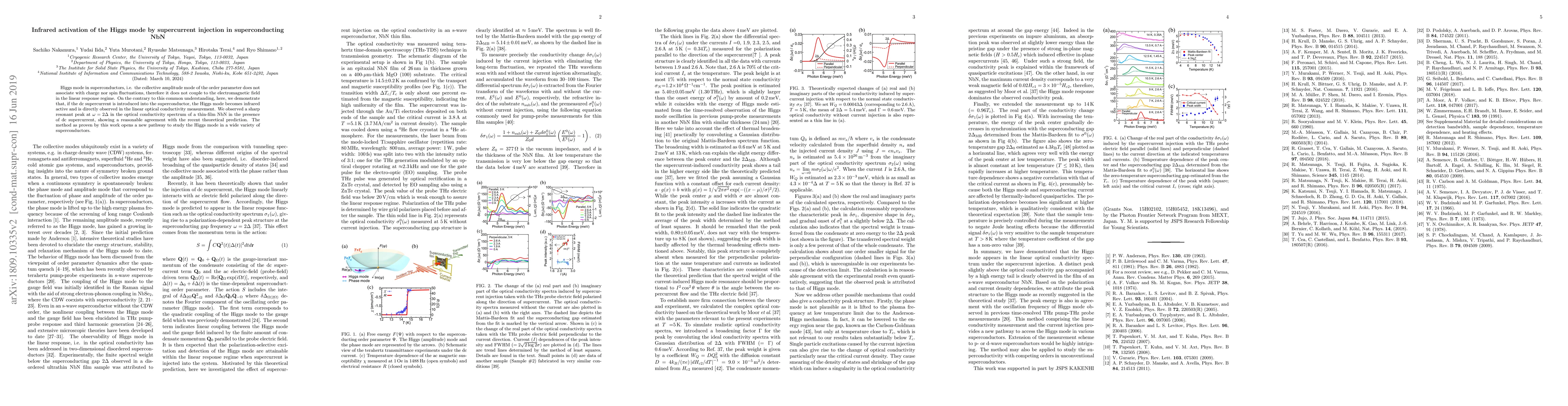 Researchers observe infrared activation of Higgs mode in superconducting NbN when a dc supercurrent is introduced, revealing a sharp resonant peak at 2Delta in the optical conductivity spectrum.