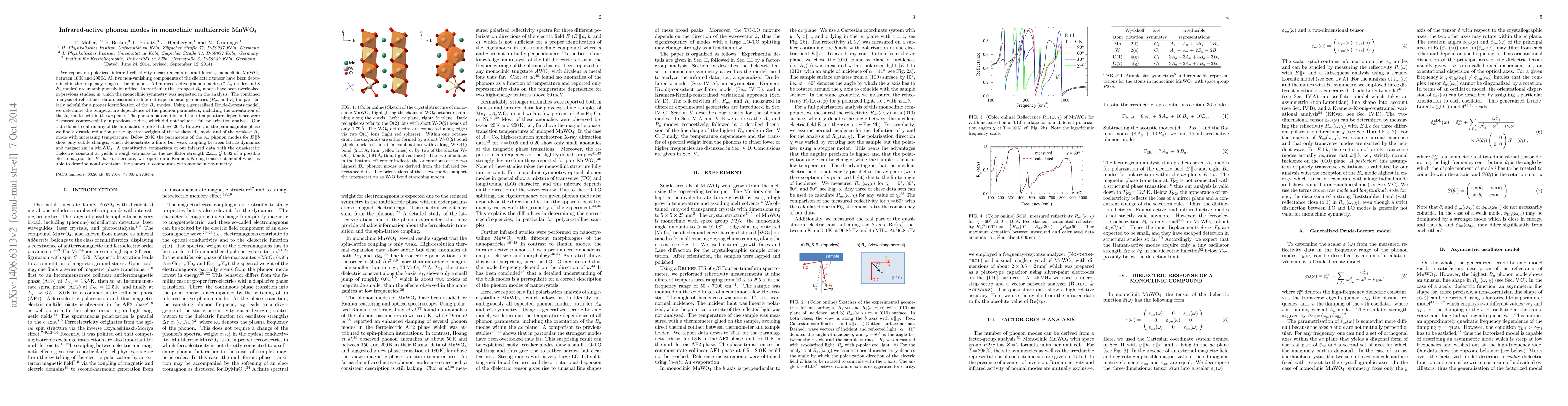 Researchers studied the infrared reflectivity of MnWO4, a multiferroic material, to identify phonon modes and their temperature dependence. They found unambiguous identification of 15 phonon modes, with subtle changes below 20K indicating weak coupling between lattice dynamics and magnetism.