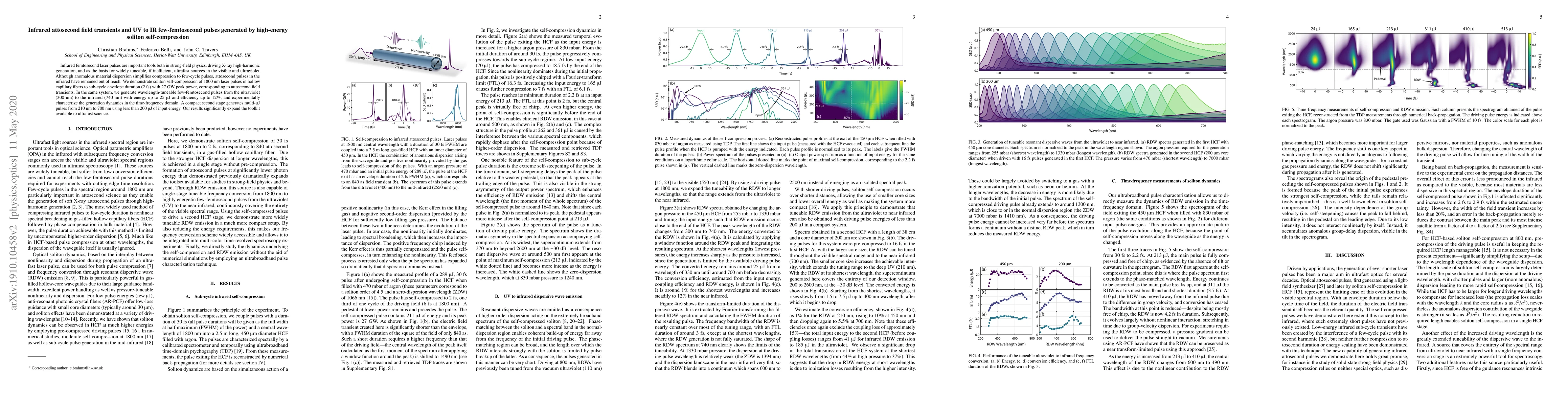 This paper demonstrates the generation of sub-cycle infrared pulses and tunable few-femtosecond pulses from UV to IR via soliton self-compression in hollow capillary fibers, achieving attosecond field transients and high-efficiency multi-$\mu$J output. The technique significantly enhances ultrafast science capabilities.