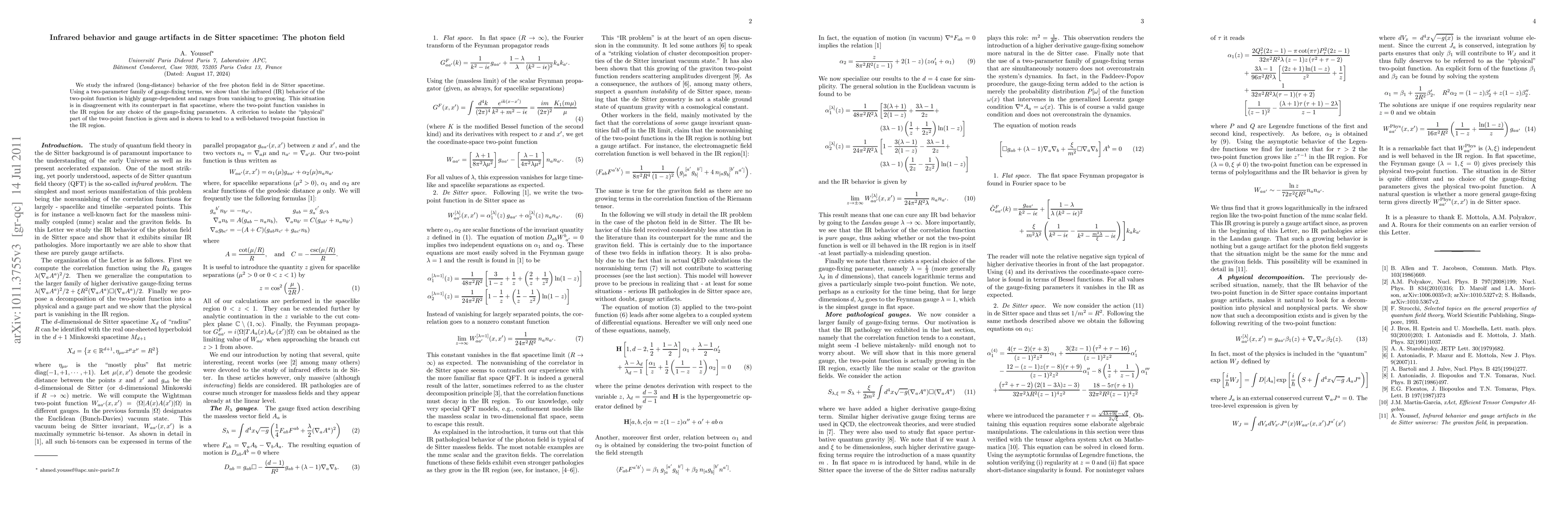 We study the infrared (long distance) behavior of the free photon field in de Sitter spacetime. Using a two-parameter family of gauge fixing terms, we show that the infrared (IR) behavior of the two-point function is highly gauge-dependent and ranges from vanishing to growing. This situation is in disagreement with its counterpart in flat spacetime, where the two-point function vanishes in the IR for any choice of the gauge fixing parameters. A criterion to isolate the "physical" part of the two-point function is given and is shown to lead to a well-behaved two-point function in the IR.