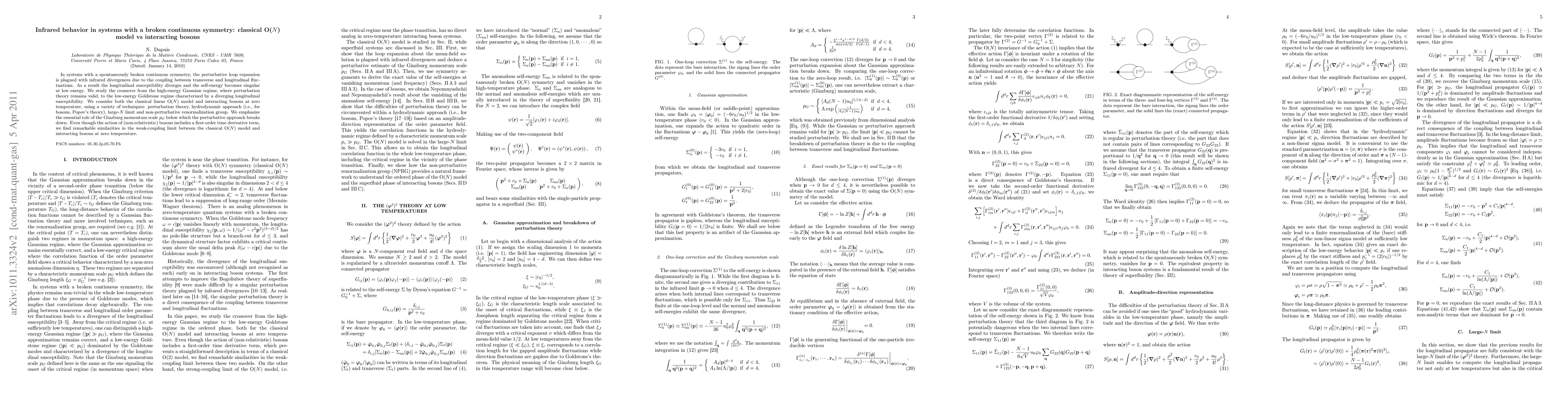 This paper investigates the infrared behavior in systems with broken continuous symmetry, comparing the classical O(N) model and interacting bosons. It finds similarities between the two in the weak-coupling limit, emphasizing the breakdown of perturbation theory below the Ginzburg momentum scale.