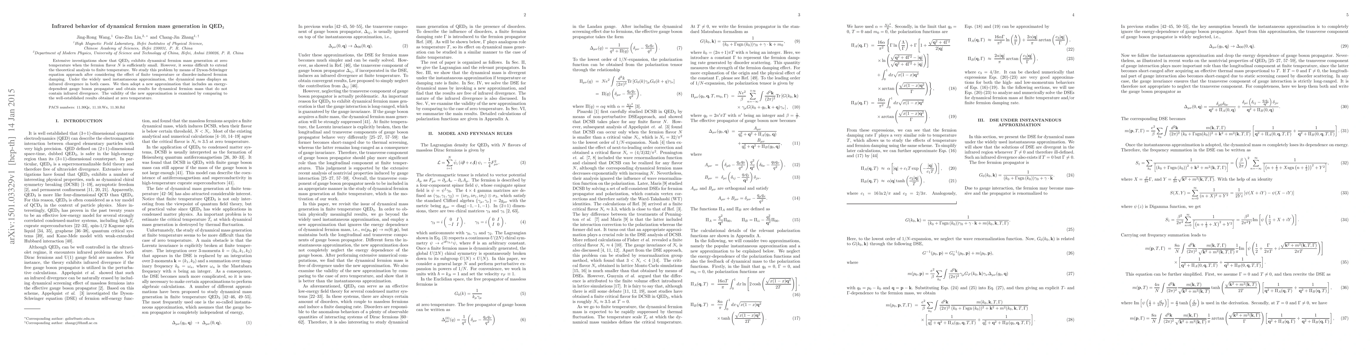 Extensive investigations show that QED$_{3}$ exhibits dynamical fermion mass generation at zero temperature when the fermion flavor $N$ is sufficiently small. However, it seems difficult to extend the theoretical analysis to finite temperature. We study this problem by means of Dyson-Schwinger equation approach after considering the effect of finite temperature or disorder-induced fermion damping. Under the widely used instantaneous approximation, the dynamical mass displays an infrared divergence in both cases. We then adopt a new approximation that includes an energy-dependent gauge boson propagator and obtain results for dynamical fermion mass that do not contain infrared divergence. The validity of the new approximation is examined by comparing to the well-established results obtained at zero temperature.