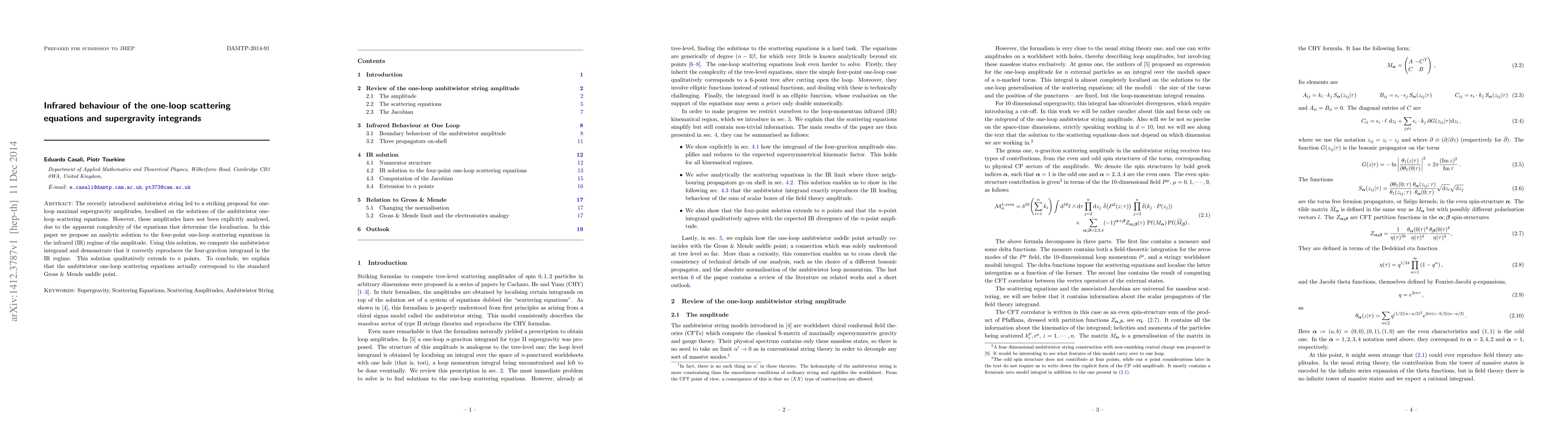 This paper presents an analytic solution to the four-point one-loop scattering equations in the infrared regime, showing that the ambitwistor integrand reproduces the four-graviton integrand. The solution extends qualitatively to n points and reveals the ambitwistor equations correspond to the standard Gross & Mende saddle point.
