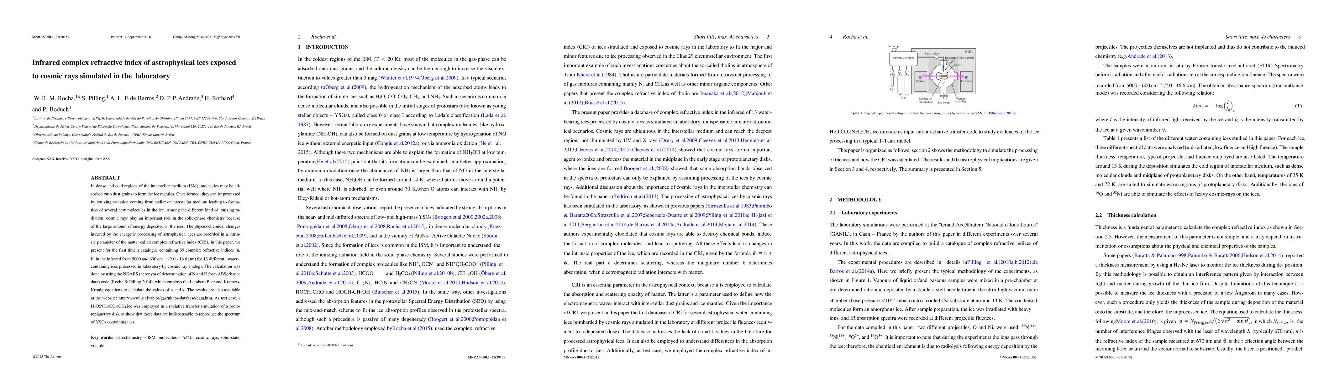 This paper presents a catalogue of 39 complex refractive indices for 13 water-containing astrophysical ices processed by cosmic rays in laboratory conditions, measured in the infrared range from 2.0 to 16.6 micrometers. These data, calculated using the NKABS code, are crucial for accurately modeling the spectra of young stellar objects (YSOs) containing ices.