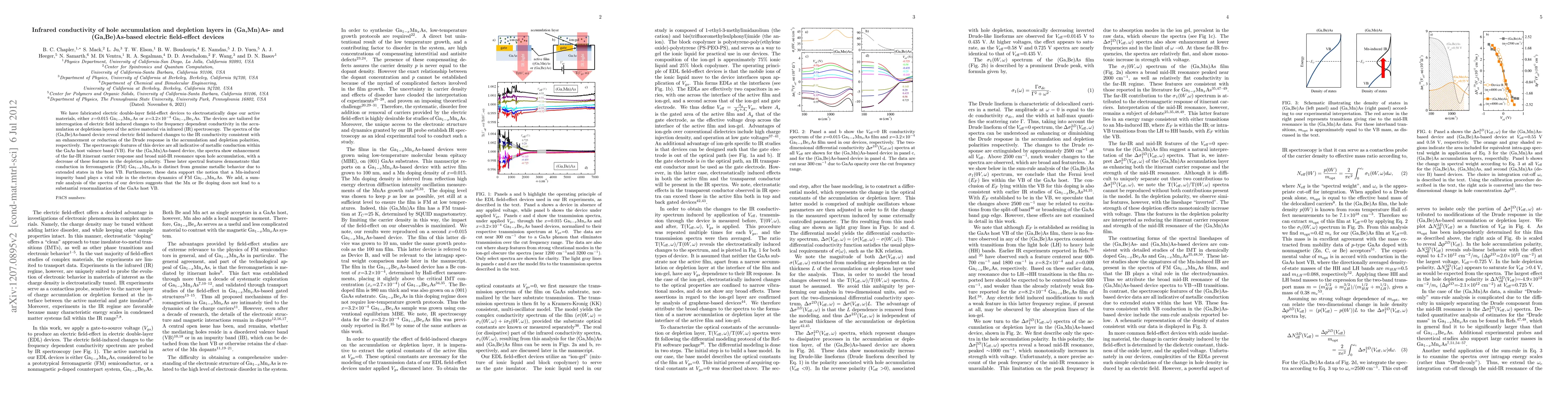 We have fabricated electric double-layer field-effect devices to electrostatically dope our active materials, either $x$=0.015 Ga$_{1-x}$Mn$_x$As or $x$=3.2$\times10^{-4}$ Ga$_{1-x}$Be$_x$As. The devices are tailored for interrogation of electric field induced changes to the frequency dependent conductivity in the accumulation or depletions layers of the active material via infrared (IR) spectroscopy. The spectra of the (Ga,Be)As-based device reveal electric field induced changes to the IR conductivity consistent with an enhancement or reduction of the Drude response in the accumulation and depletion polarities, respectively. The spectroscopic features of this device are all indicative of metallic conduction within the GaAs host valence band (VB). For the (Ga,Mn)As-based device, the spectra show enhancement of the far-IR itinerant carrier response and broad mid-IR resonance upon hole accumulation, with a decrease of these features in the depletion polarity. These later spectral features demonstrate that conduction in ferromagnetic (FM) Ga$_{1-x}$Mn$_x$As is distinct from genuine metallic behavior due to extended states in the host VB. Furthermore, these data support the notion that a Mn-induced impurity band plays a vital role in the electron dynamics of FM Ga$_{1-x}$Mn$_x$As. We add, a sum-rule analysis of the spectra of our devices suggests that the Mn or Be doping does not lead to a substantial renormalization of the GaAs host VB.