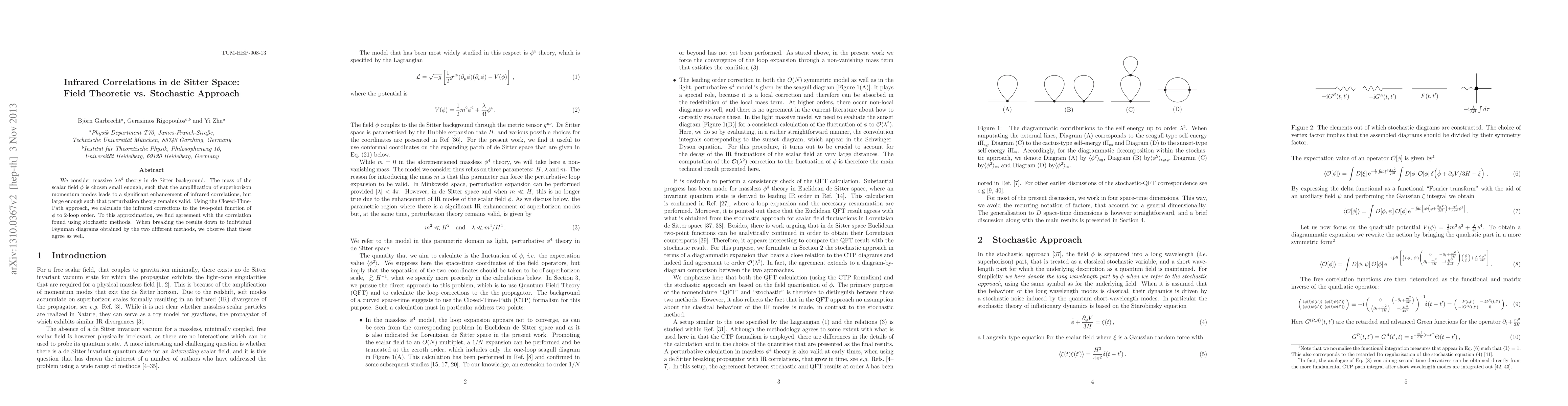 This paper investigates infrared correlations in de Sitter space for a massive \lambda\phi^4 theory, comparing results from field theoretic and stochastic approaches. Both methods yield consistent results for the infrared corrections to the two-point function of the scalar field \phi, confirming the validity of perturbation theory.