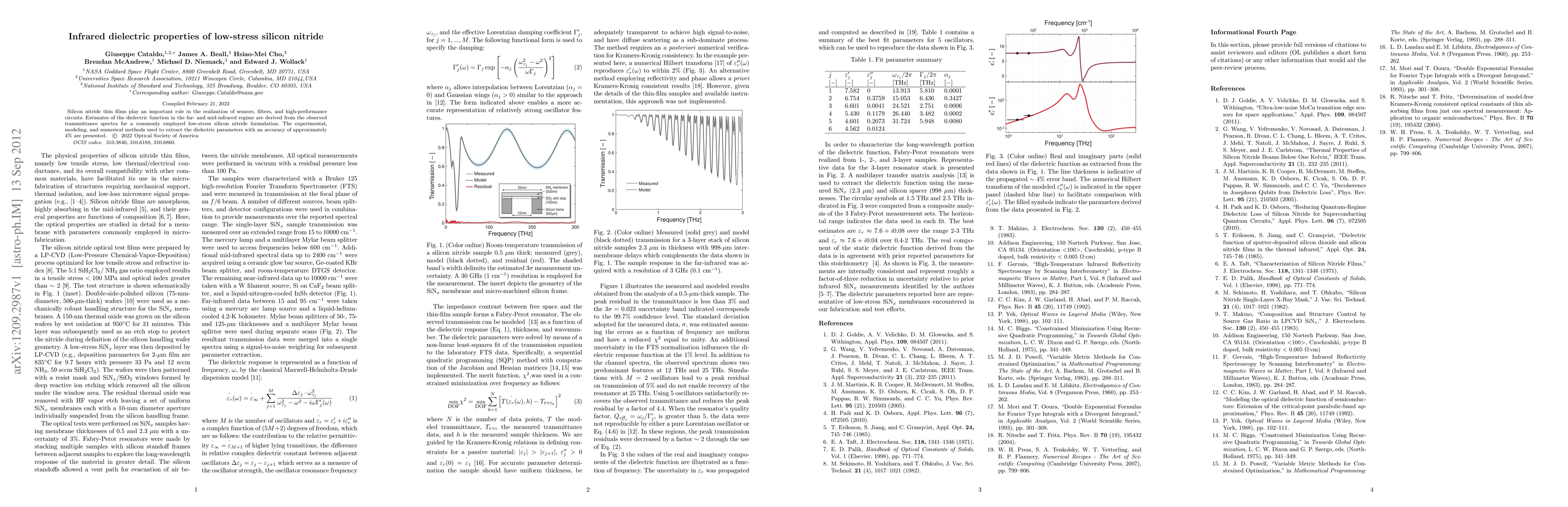 This paper investigates the infrared dielectric properties of low-stress silicon nitride thin films, providing accurate estimates of the dielectric function from transmittance spectra and detailing the methods used to achieve an accuracy of around 4%. The findings are crucial for the development of sensors, filters, and high-performance circuits.